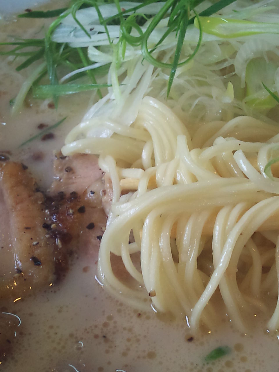 少し褐色の白濁スープに見事に映えている。