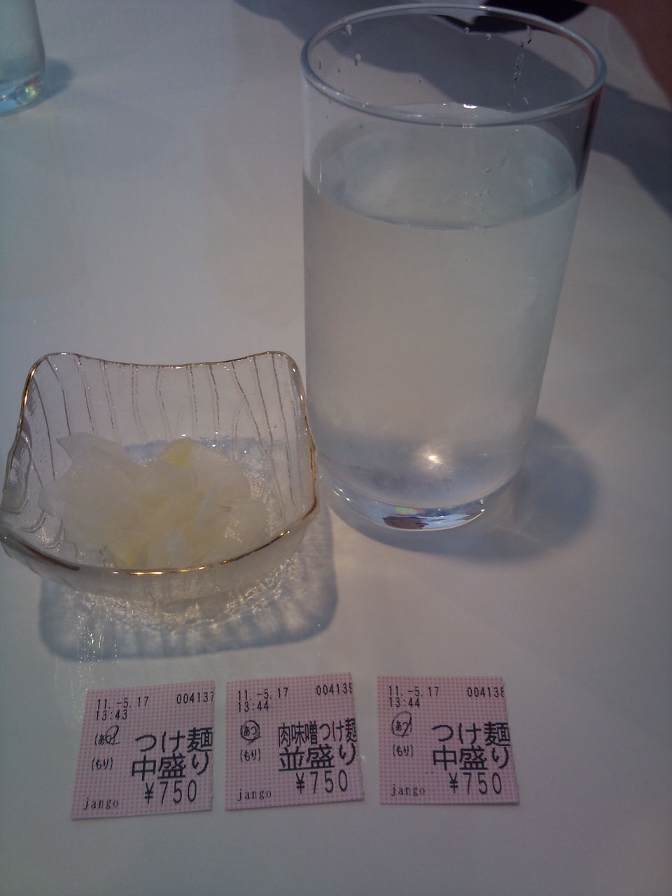 水と漬け物が運ばれてくる。