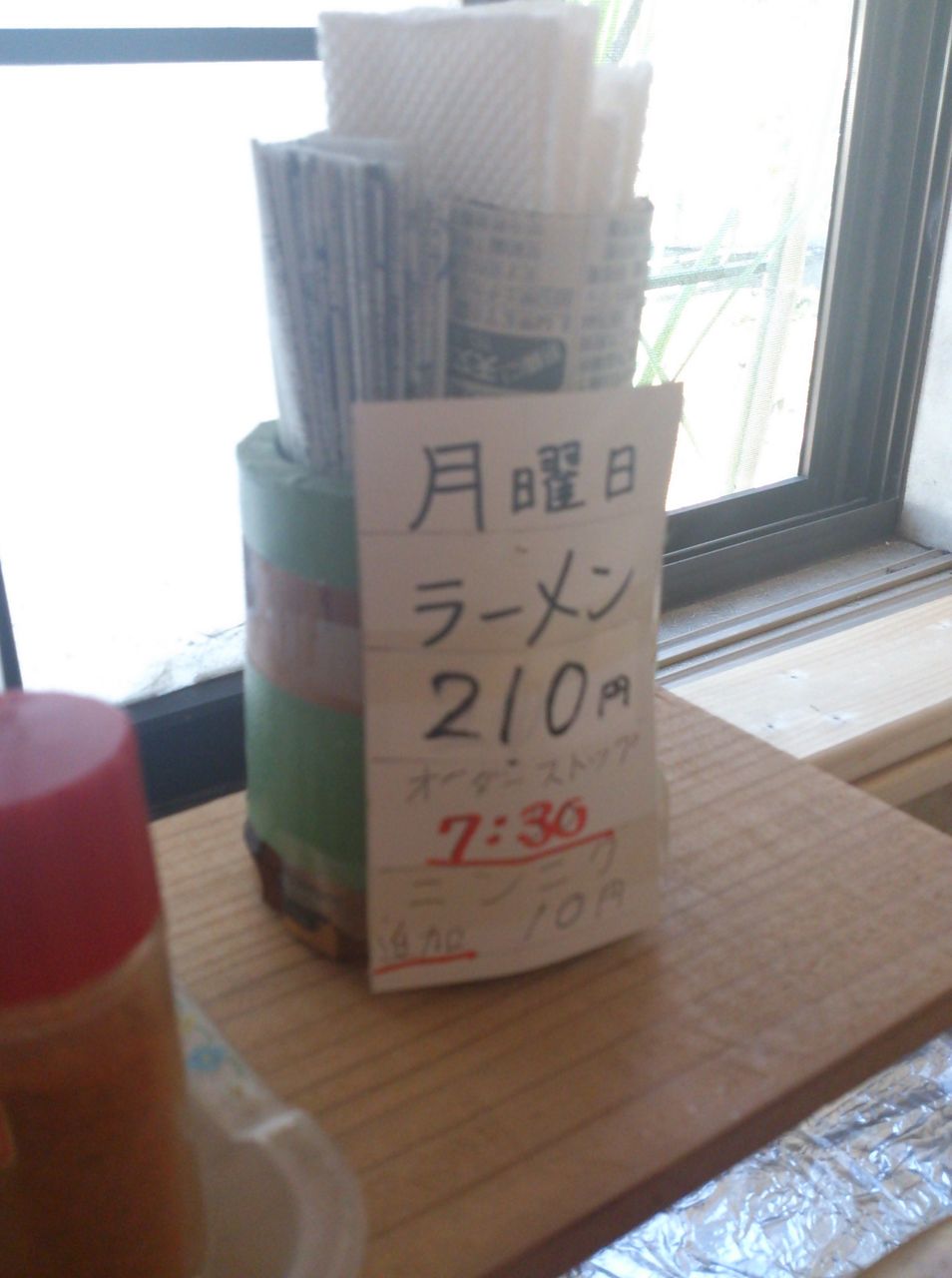 月曜はラーメン210円である模様。