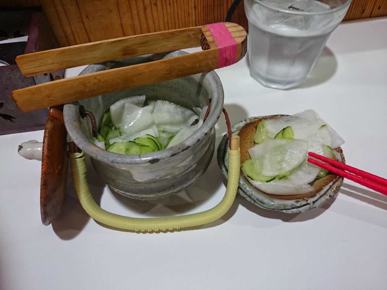 運ばれてきた水と漬け物を受け取りながら、