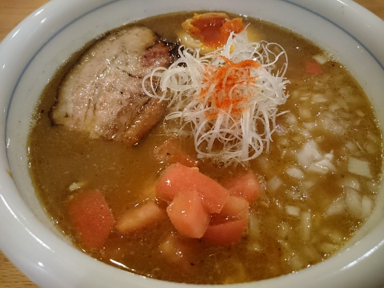 逆に、味玉はやや強めの味付けとなっていた。