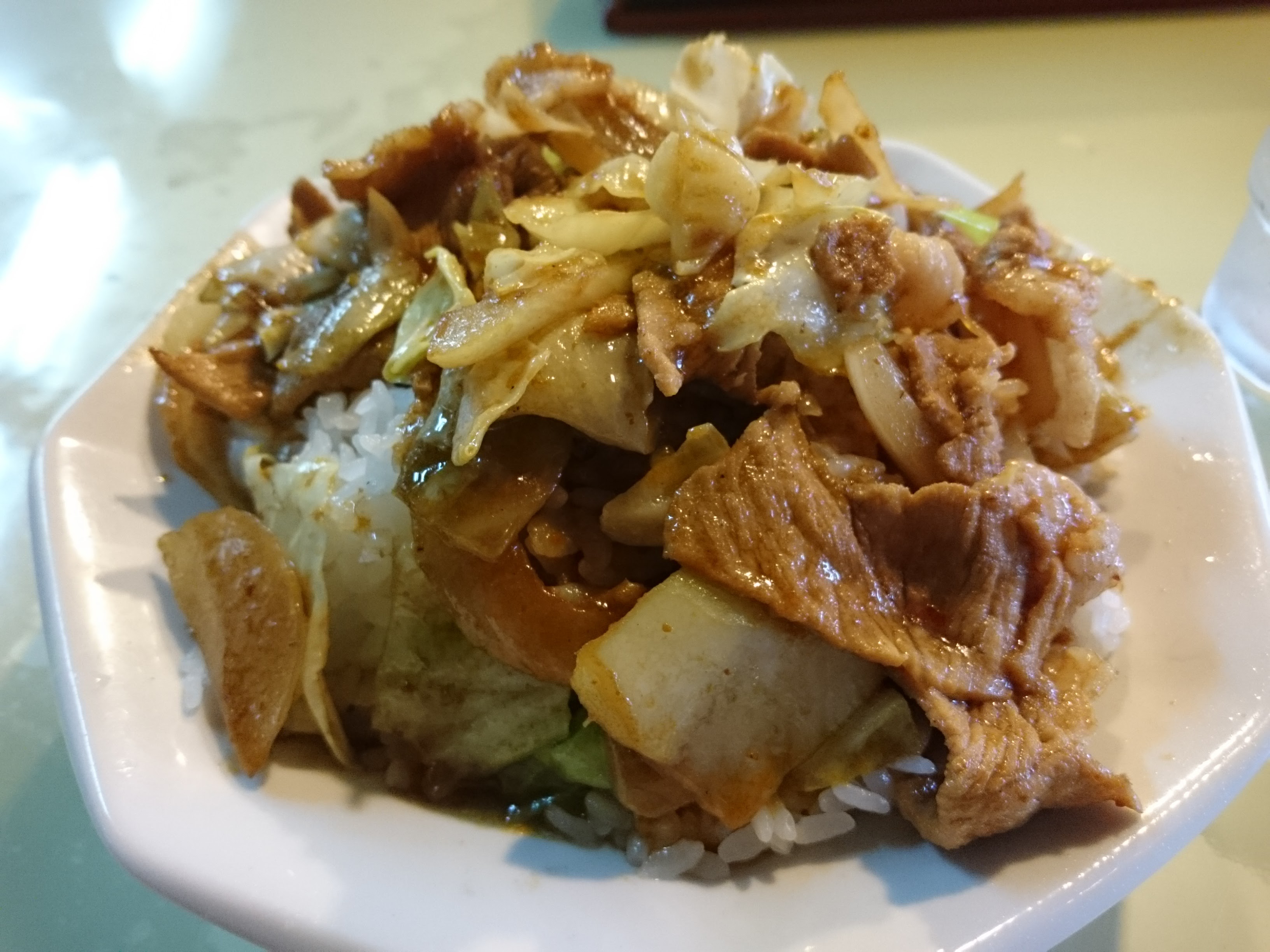スタミナ丼は甘辛い調理であるが