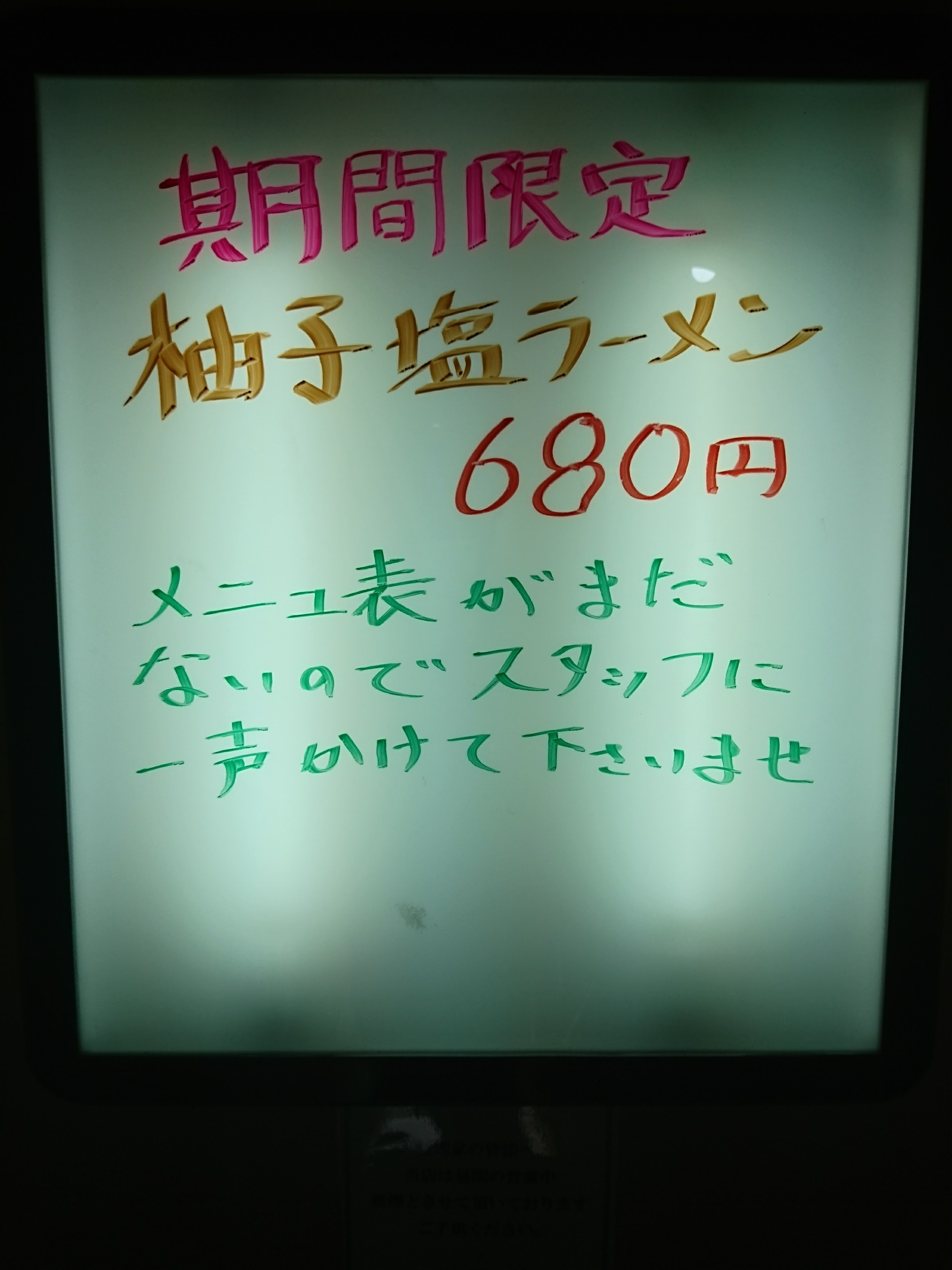 柚子塩ラーメン 680円