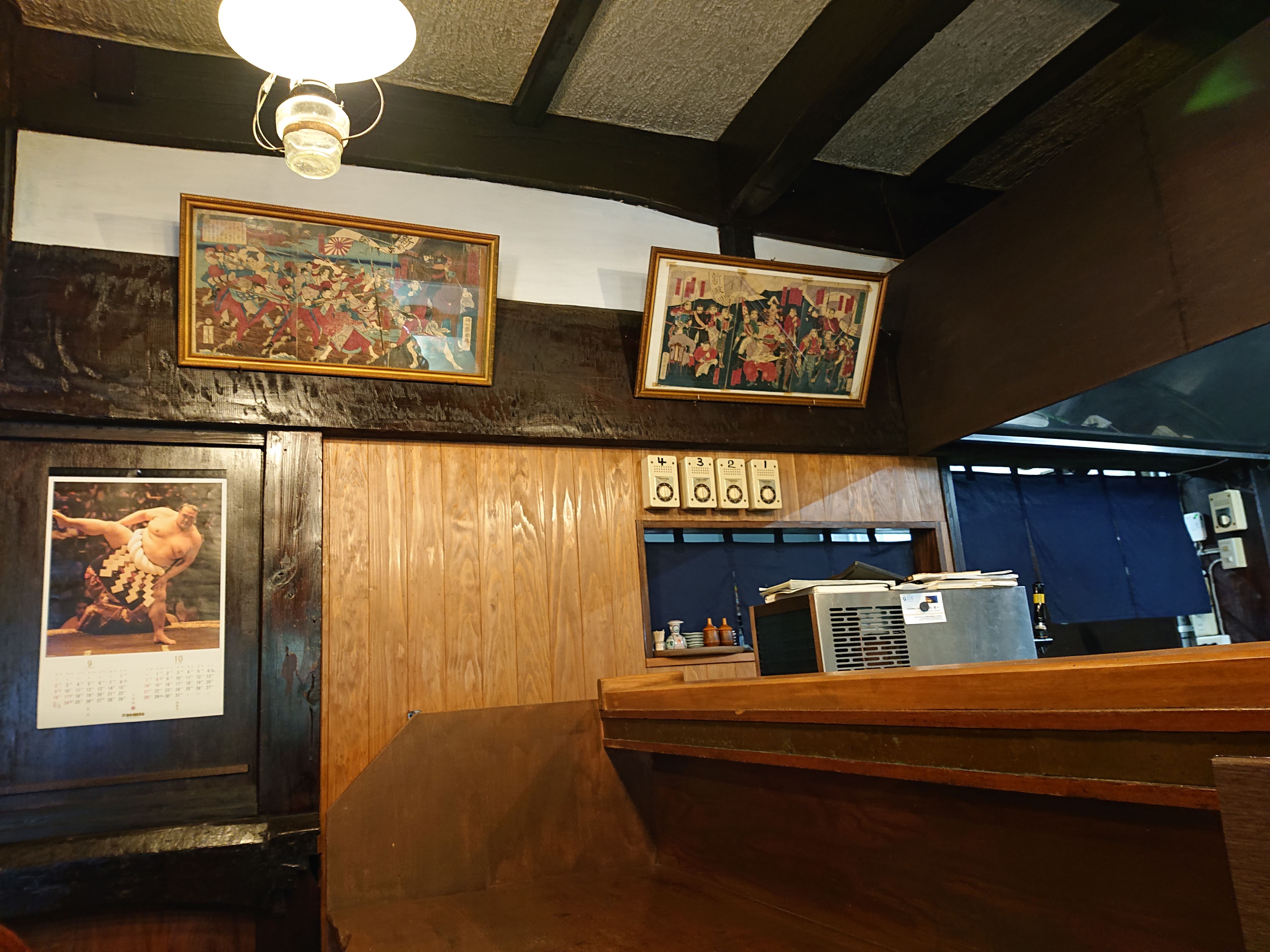 壁に貼られた錦絵なども