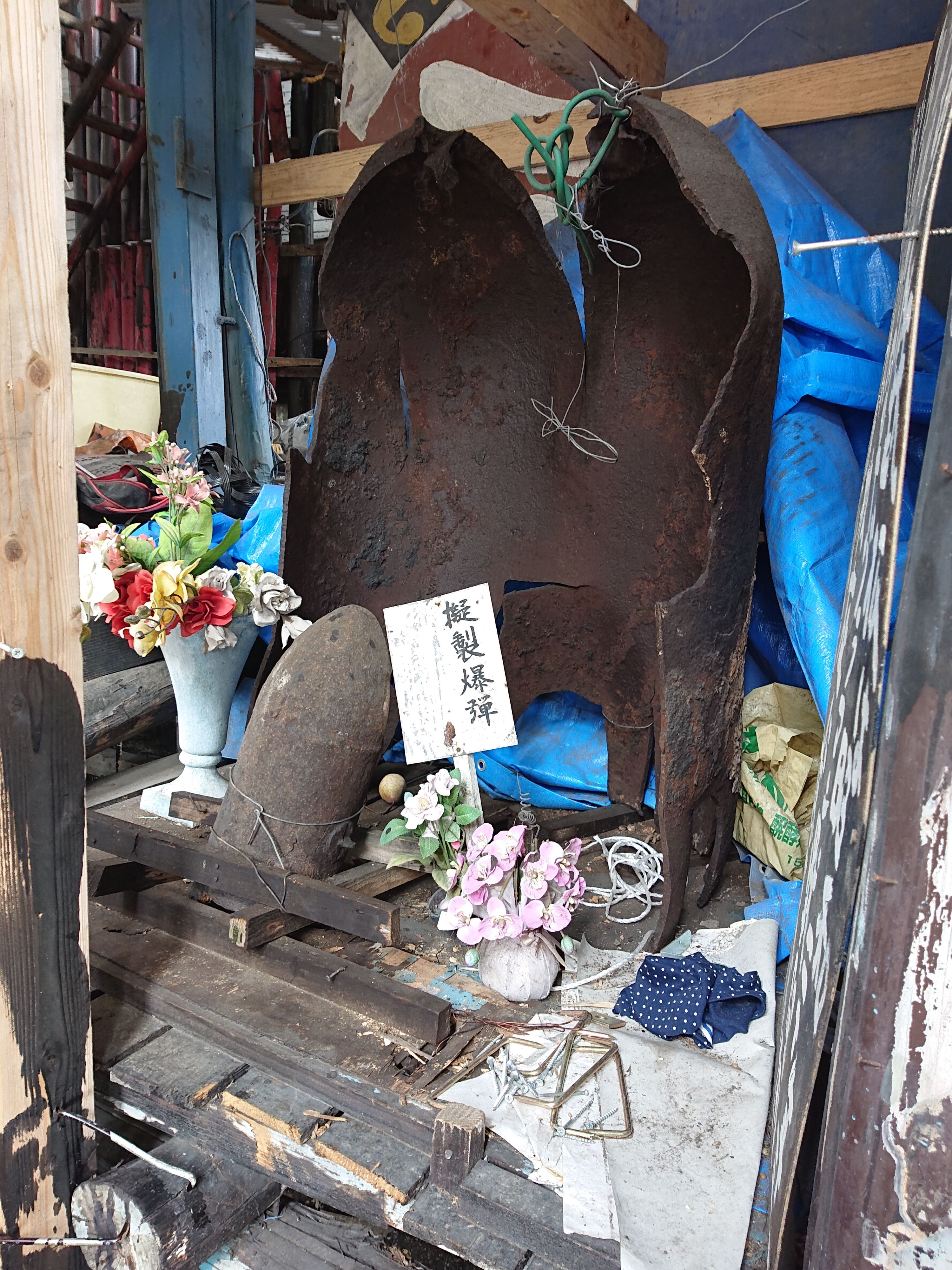 擬製爆弾と不発弾の破片の展示が。