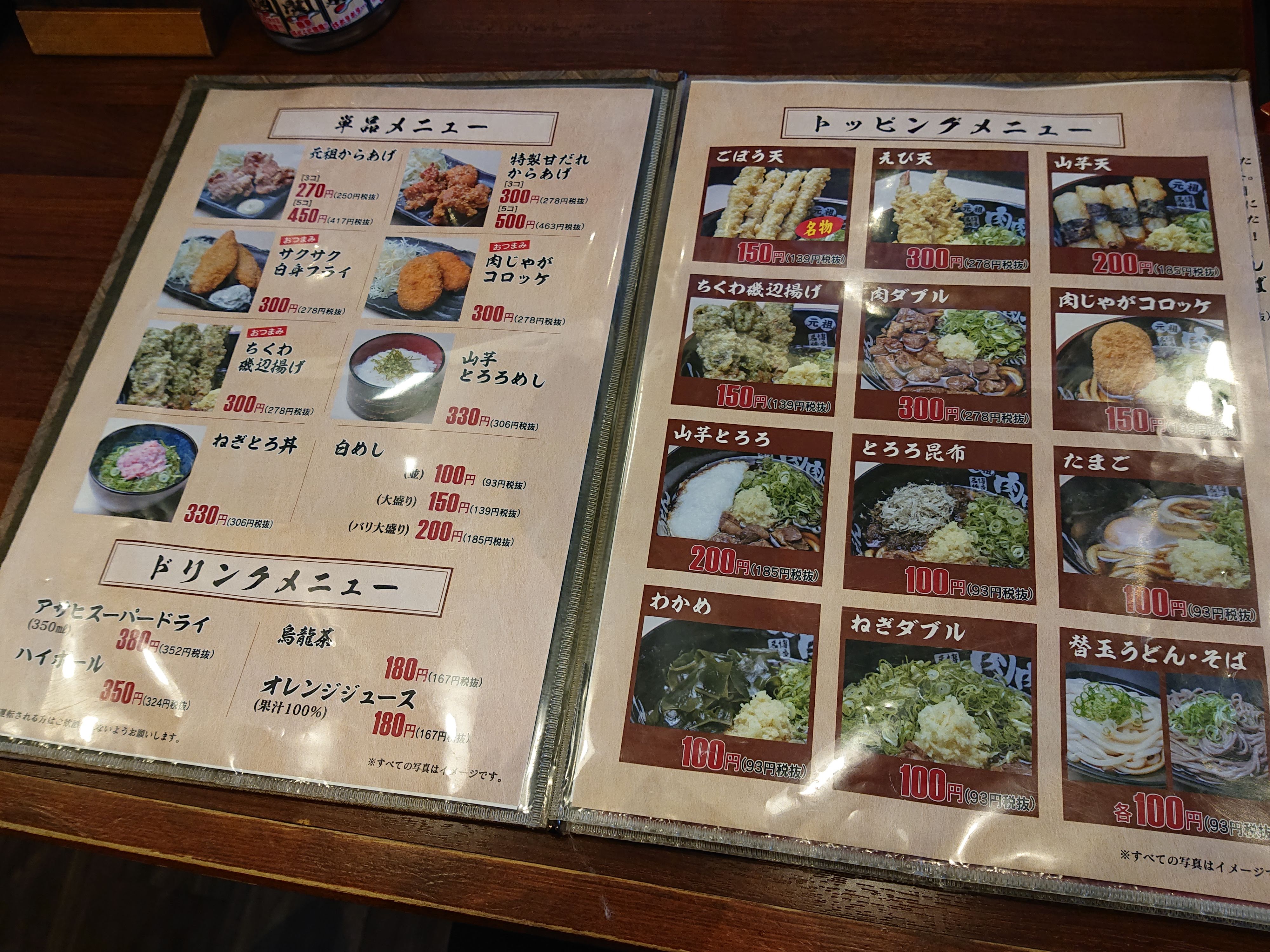 「うどん」「今日の麺」