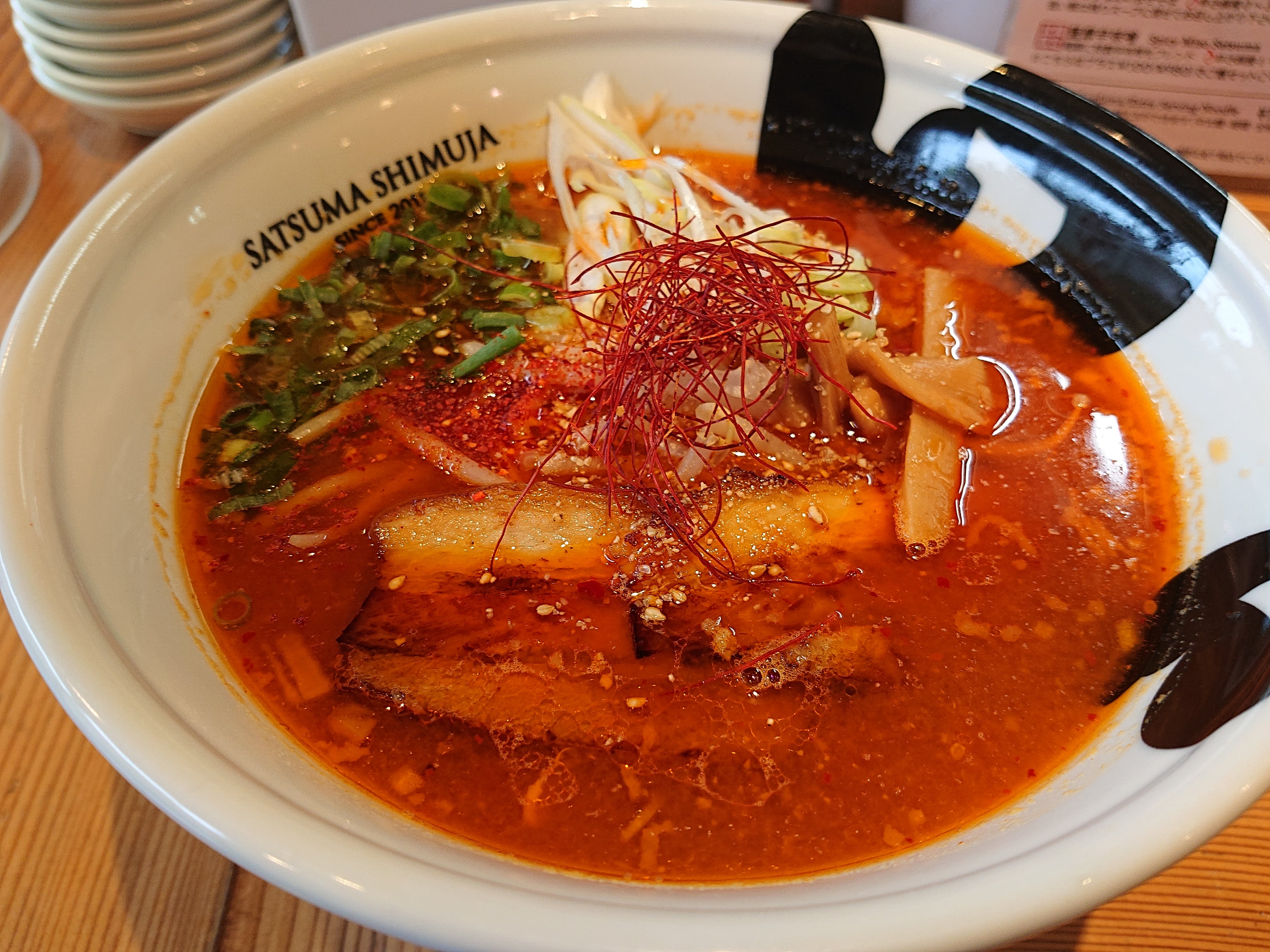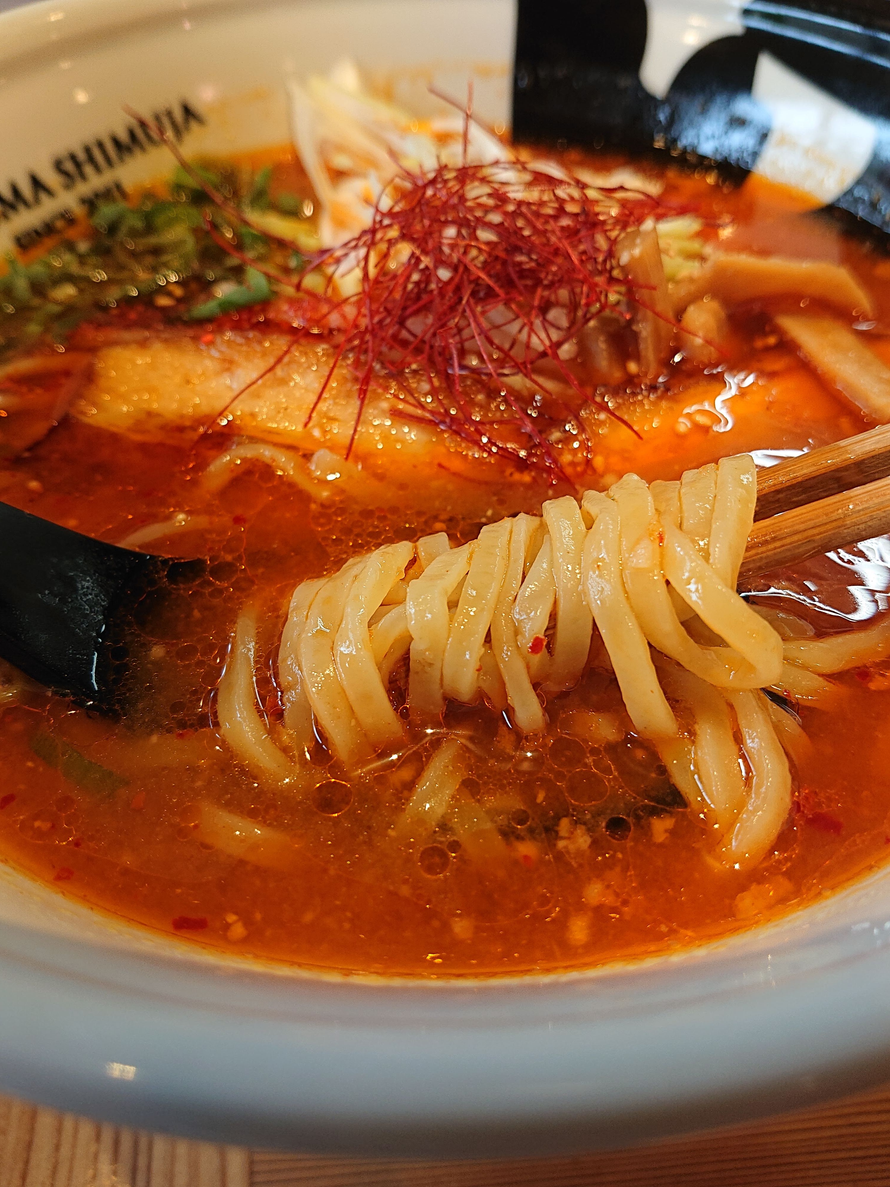 太麺で辛さ3で。