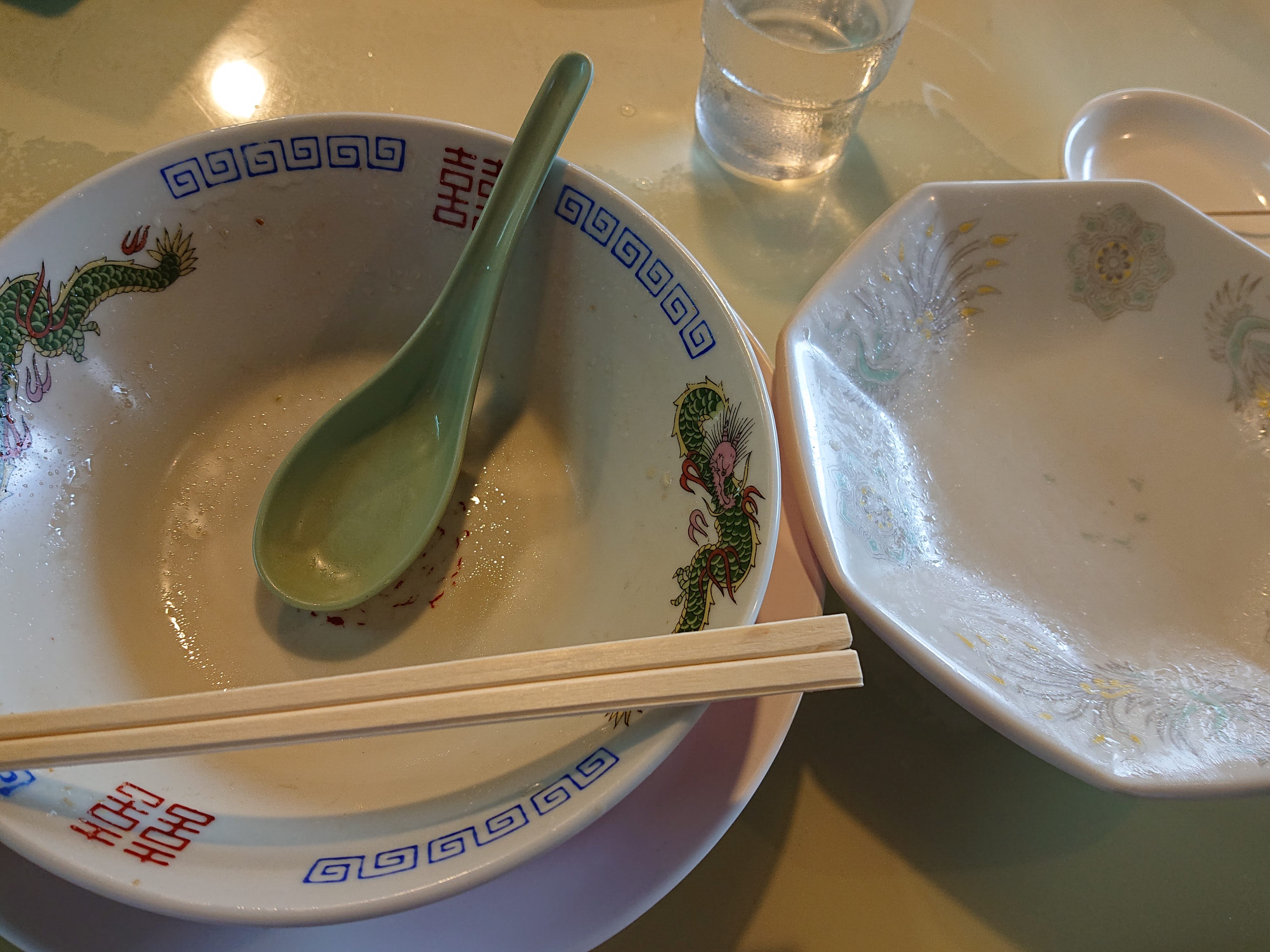 ラーメンのスープでのどを潤す作戦。