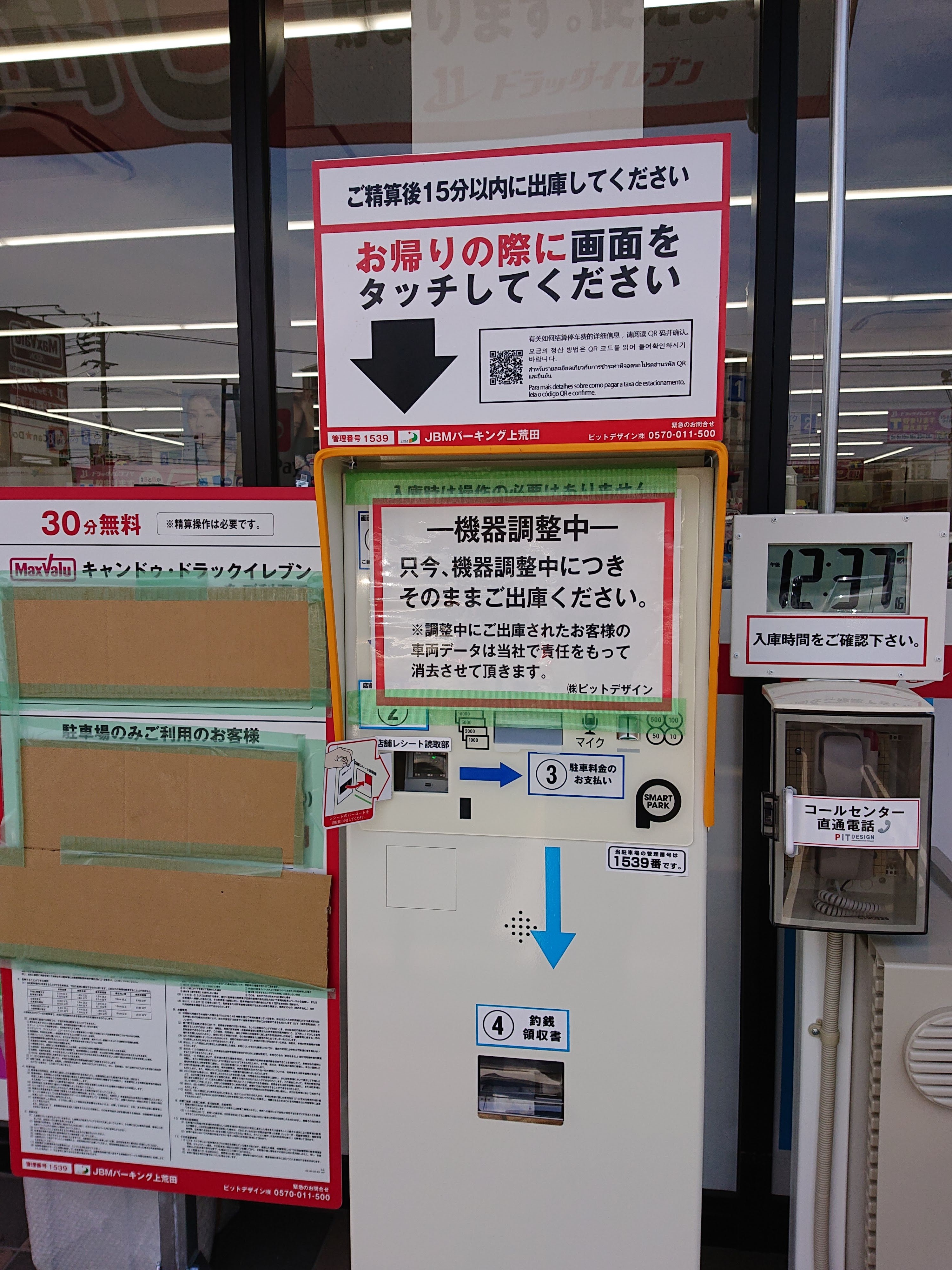 自分のナンバーを入力しての精算