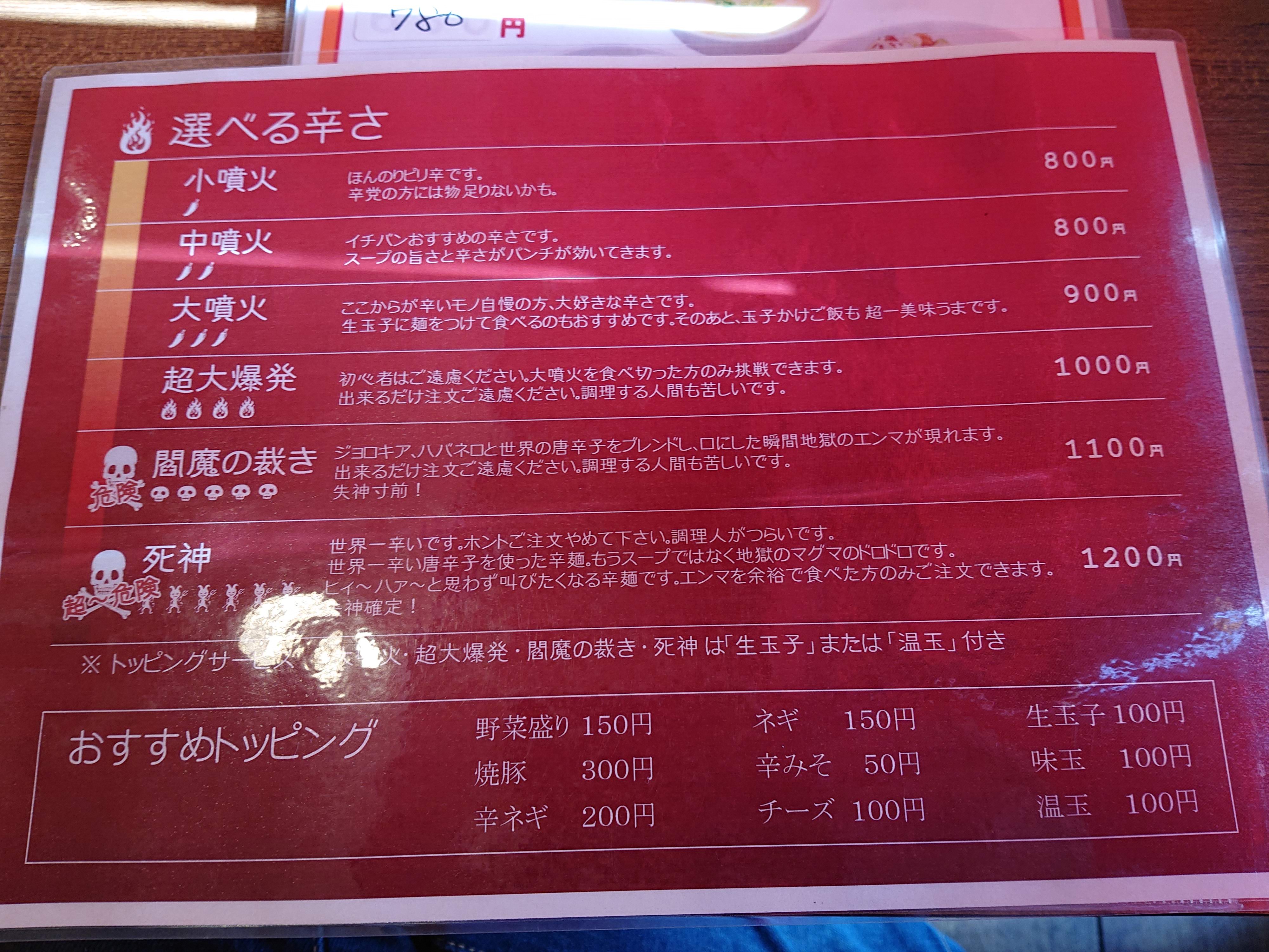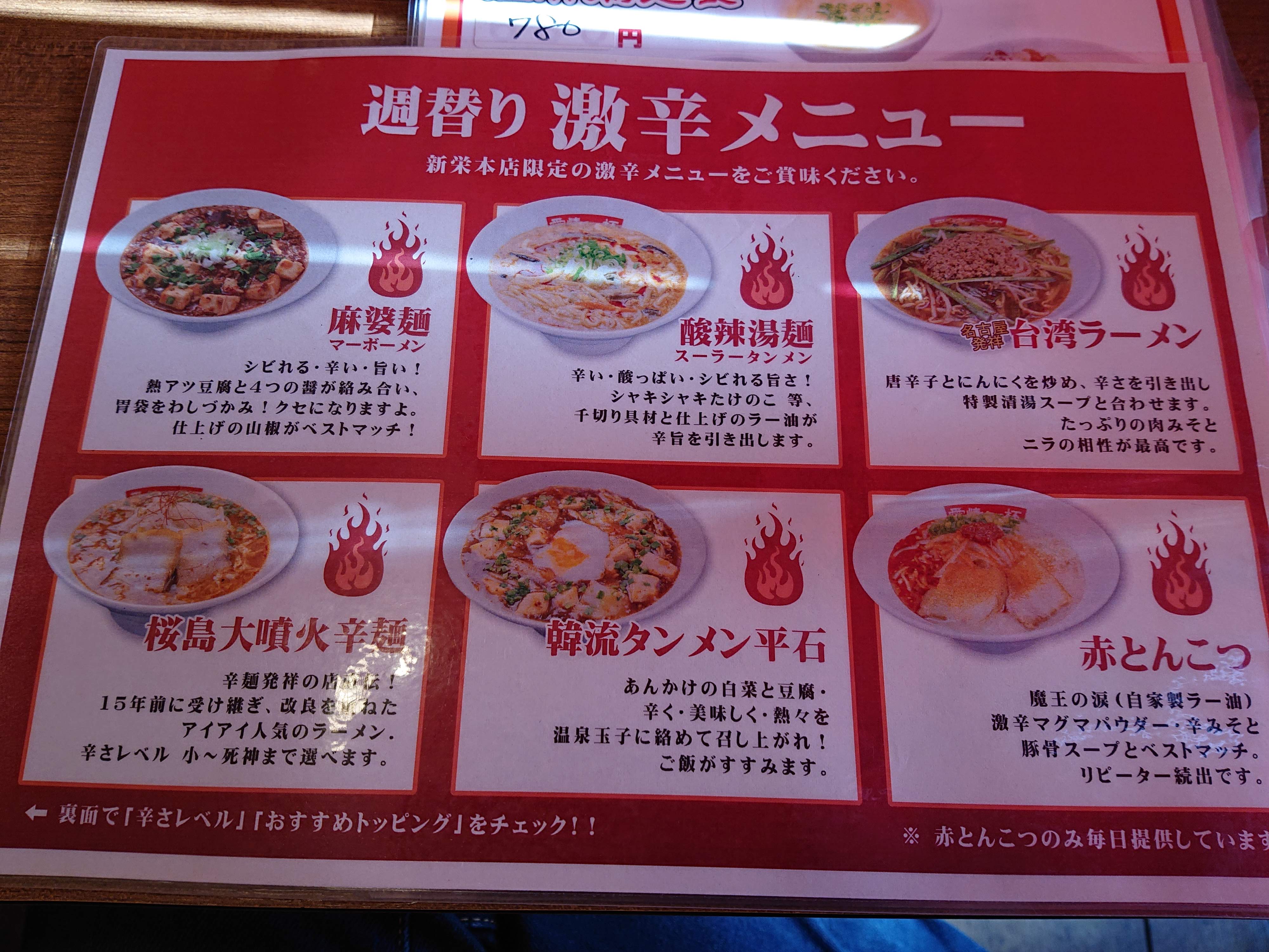 こちらの店の週替わり激辛メニューの中では