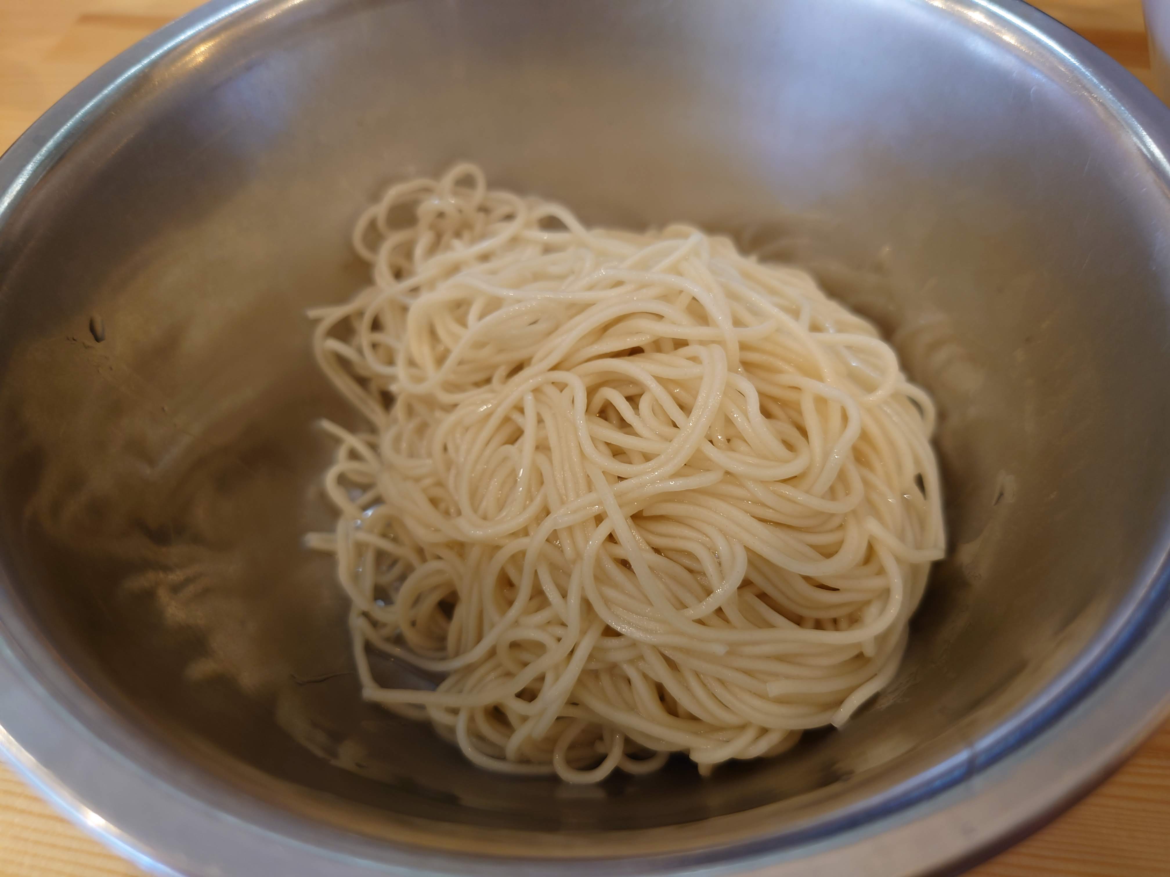 ちょうど麺をさらえたところで