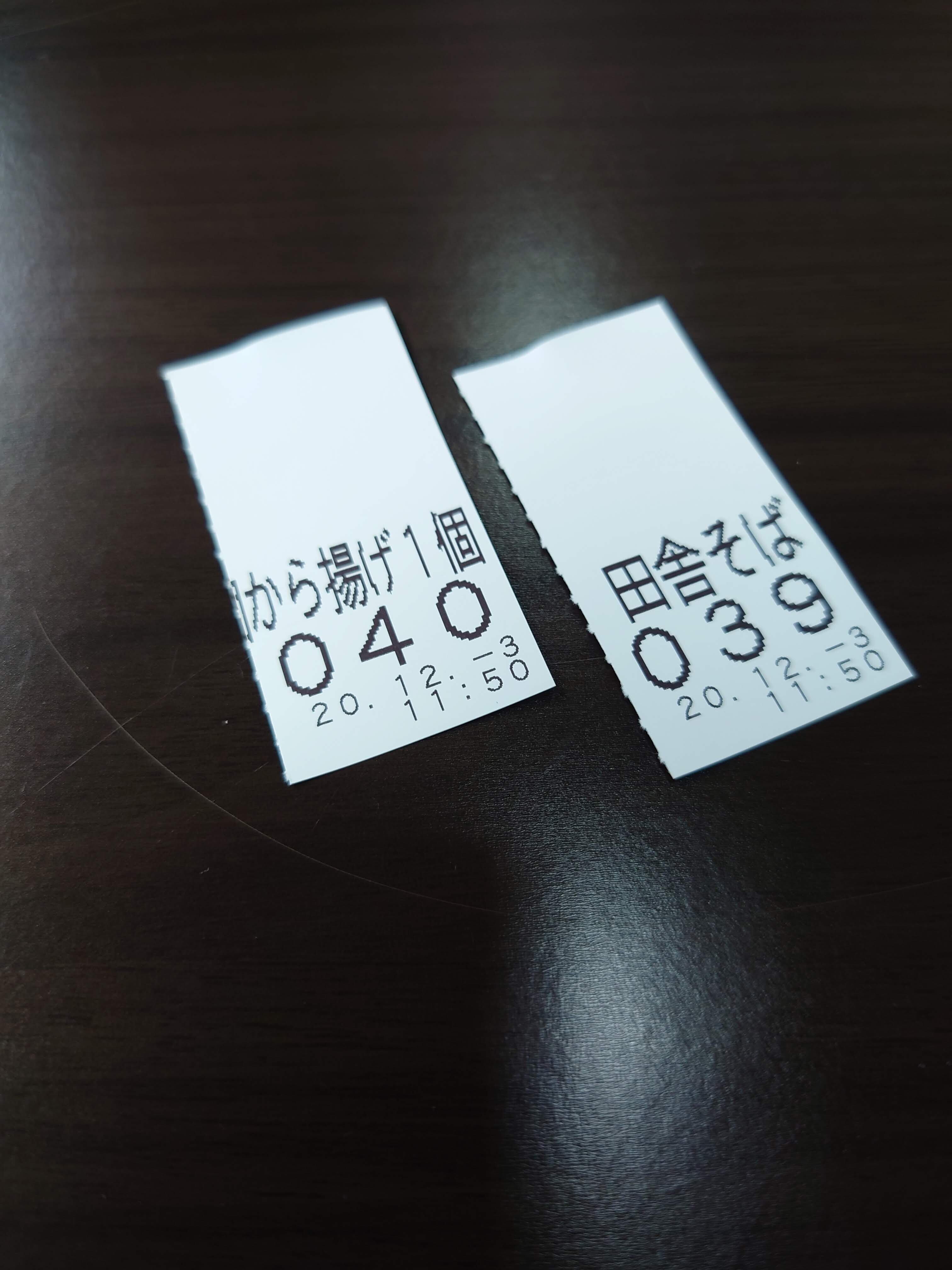 自分で食券を半分にもぎり