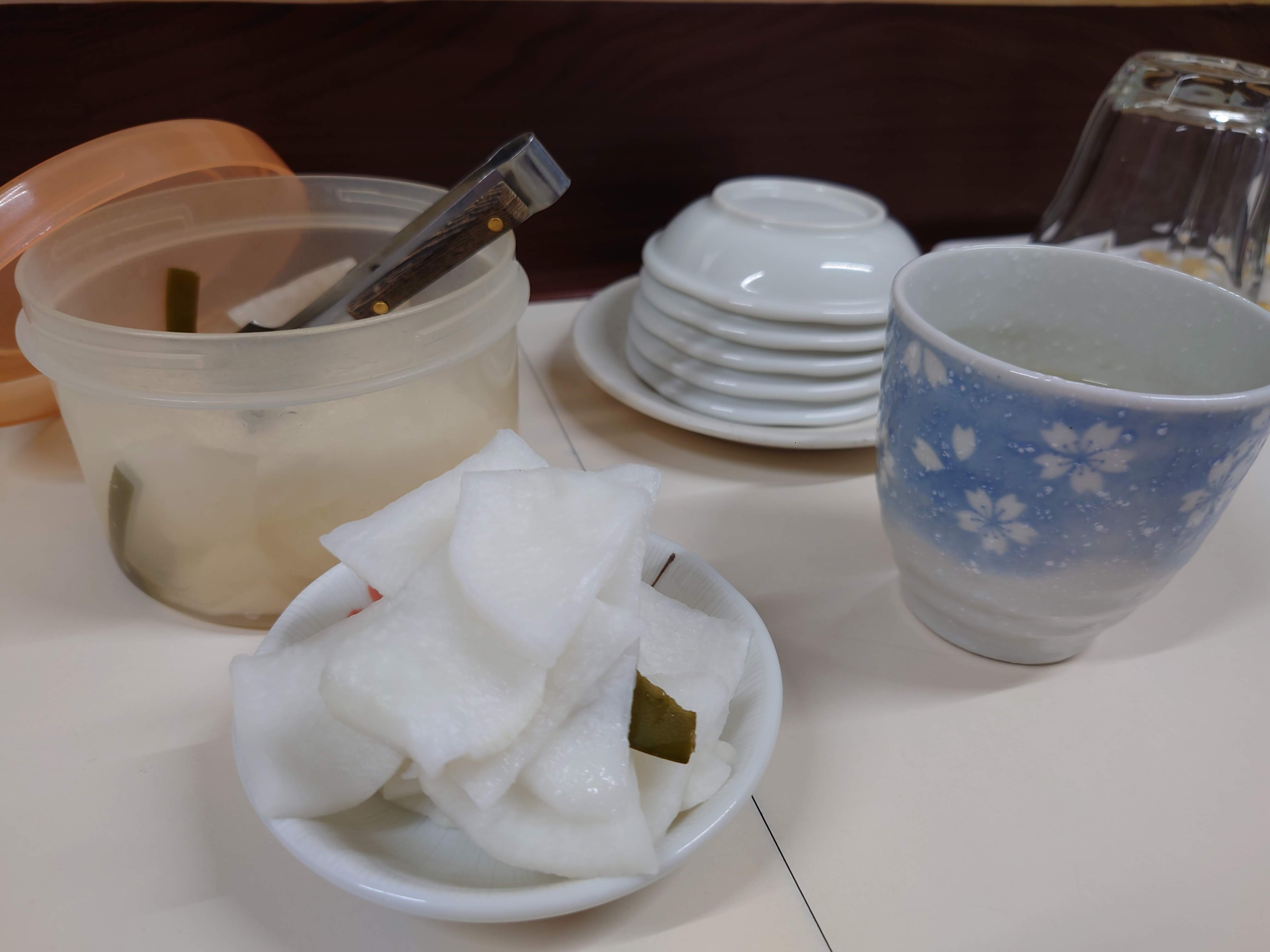 卓上のダイコンの漬物が