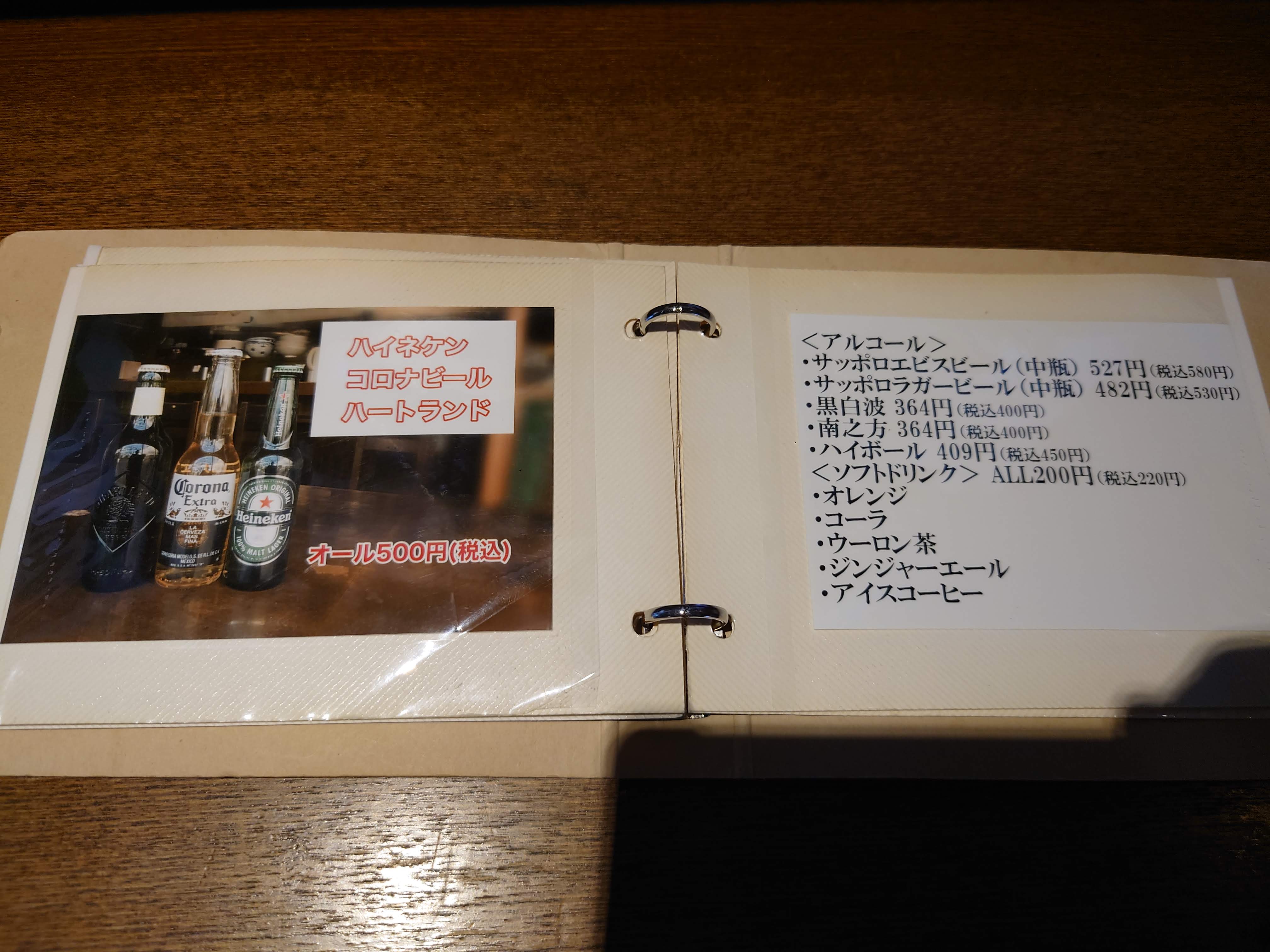 あらためてメニューを。