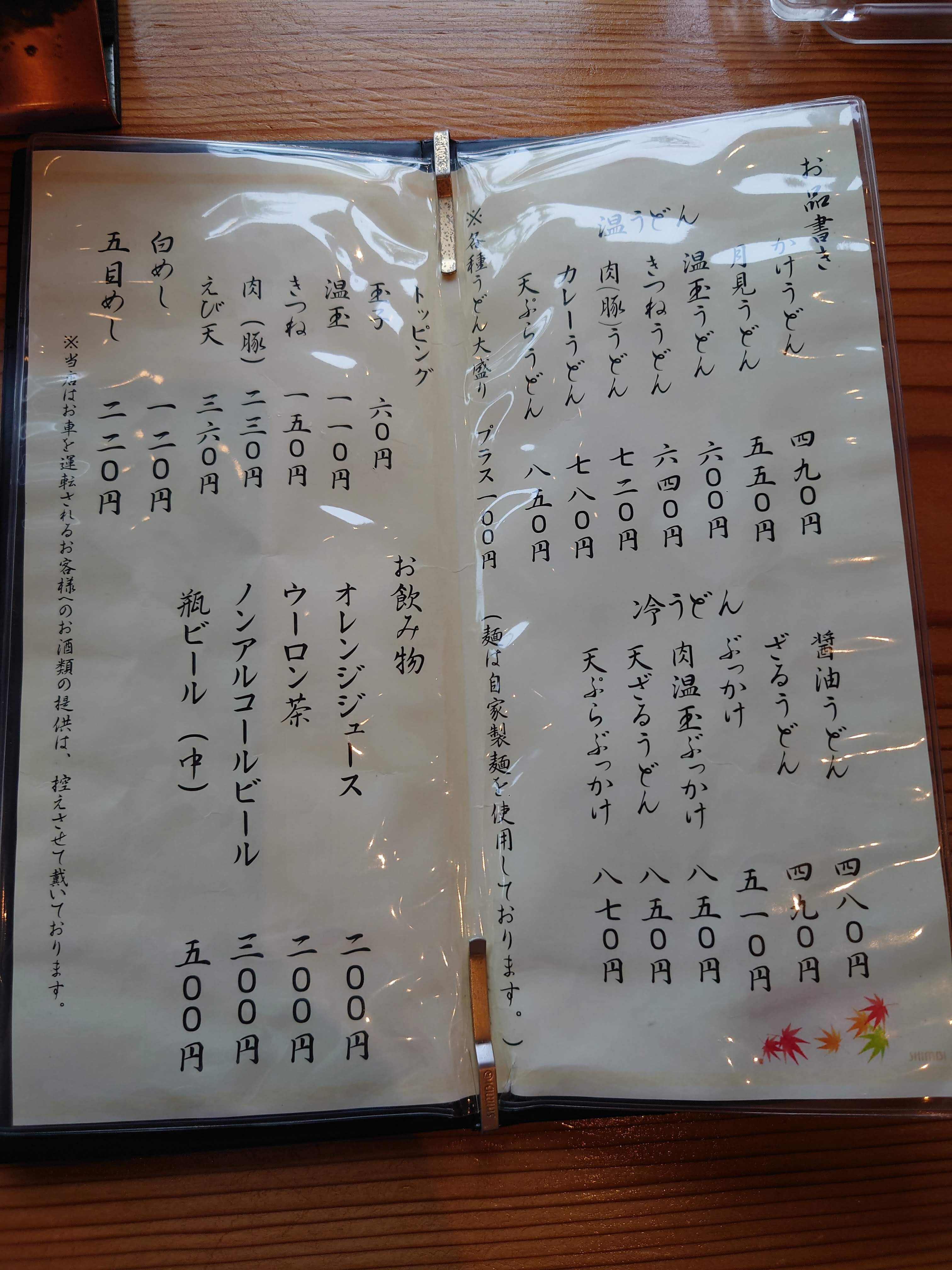 さてメニュー。