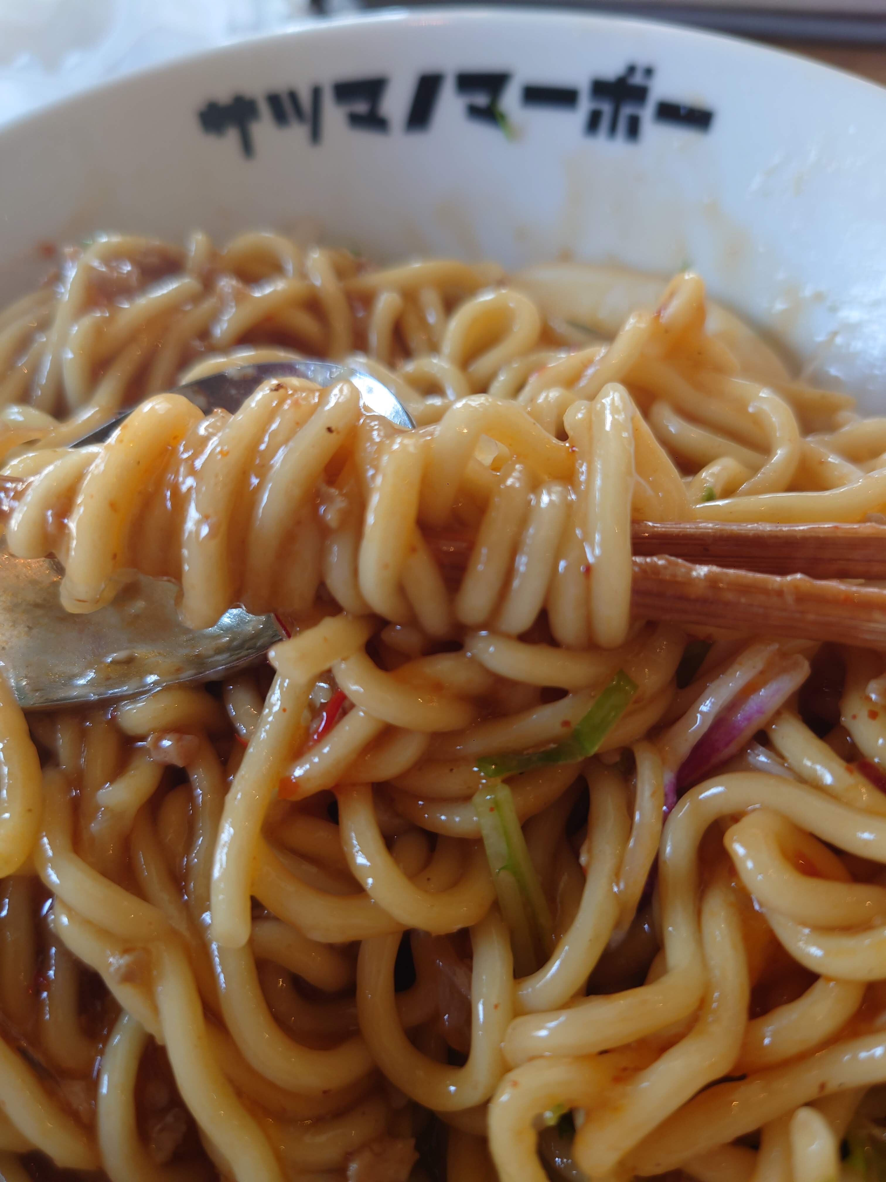 によりどっぷり麻婆あんと麺を絡めて
