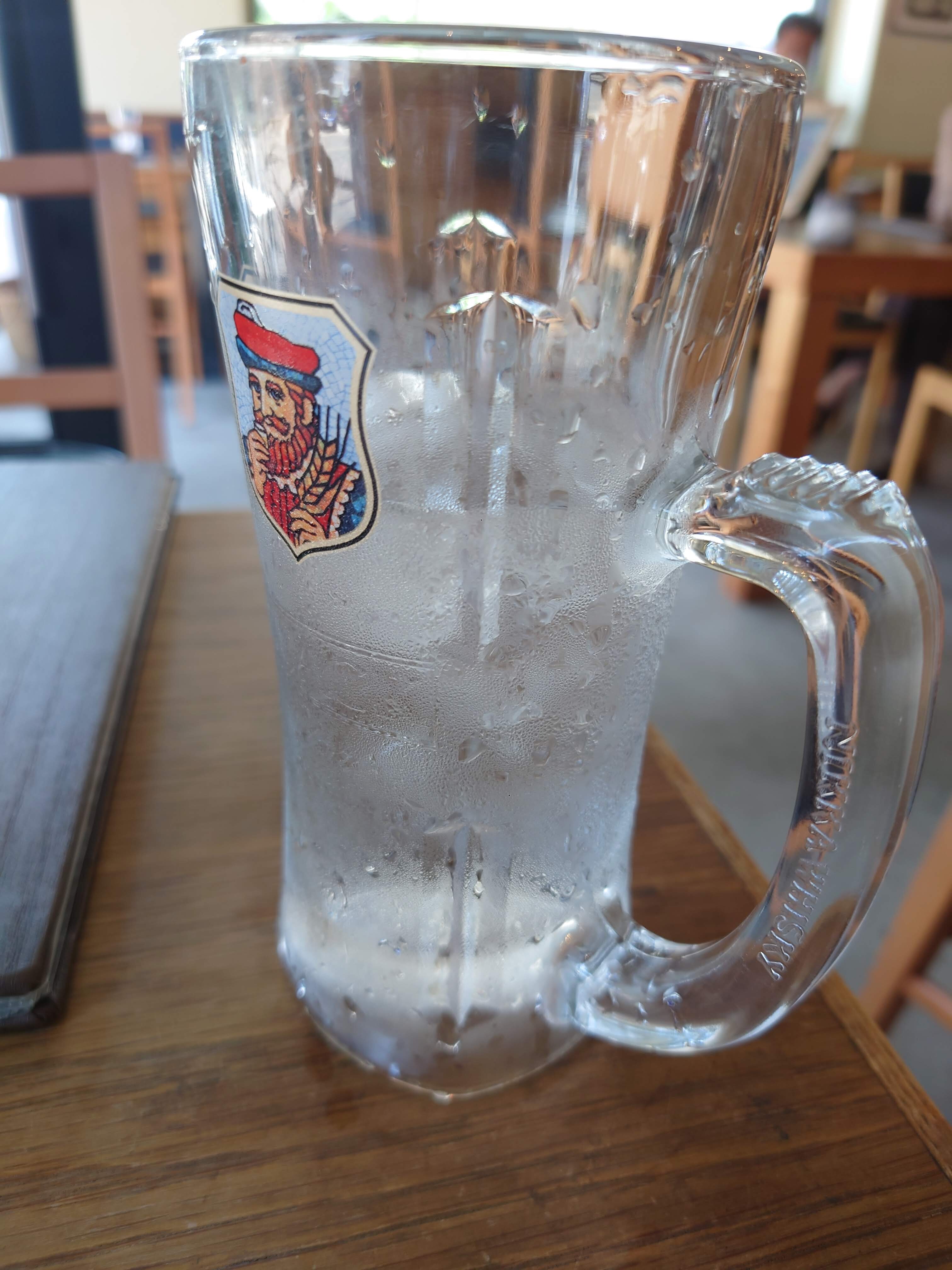 冷水がジョッキで出てくるのが