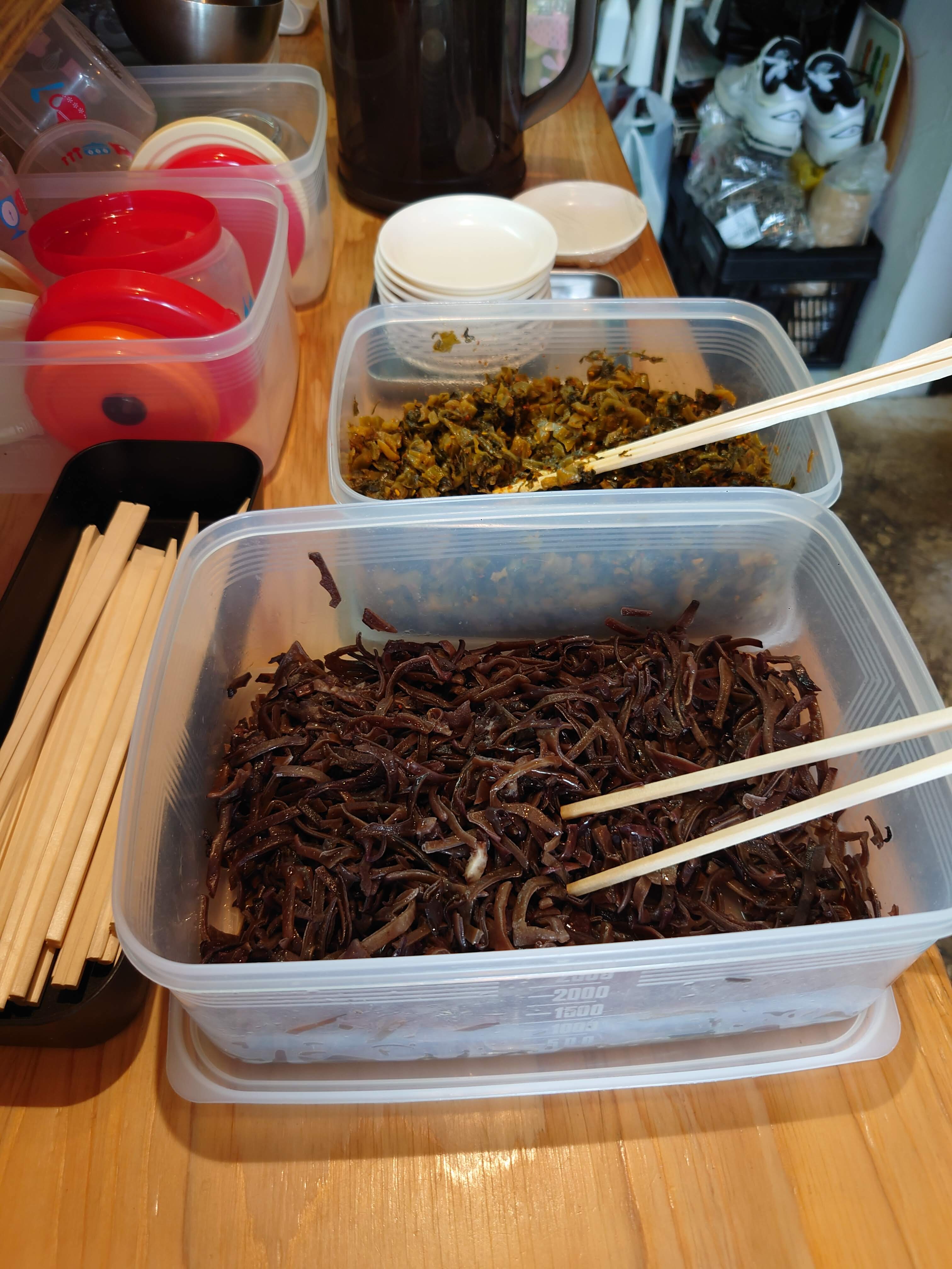 すぐ横の辛子高菜とキクラゲを取ってくる。