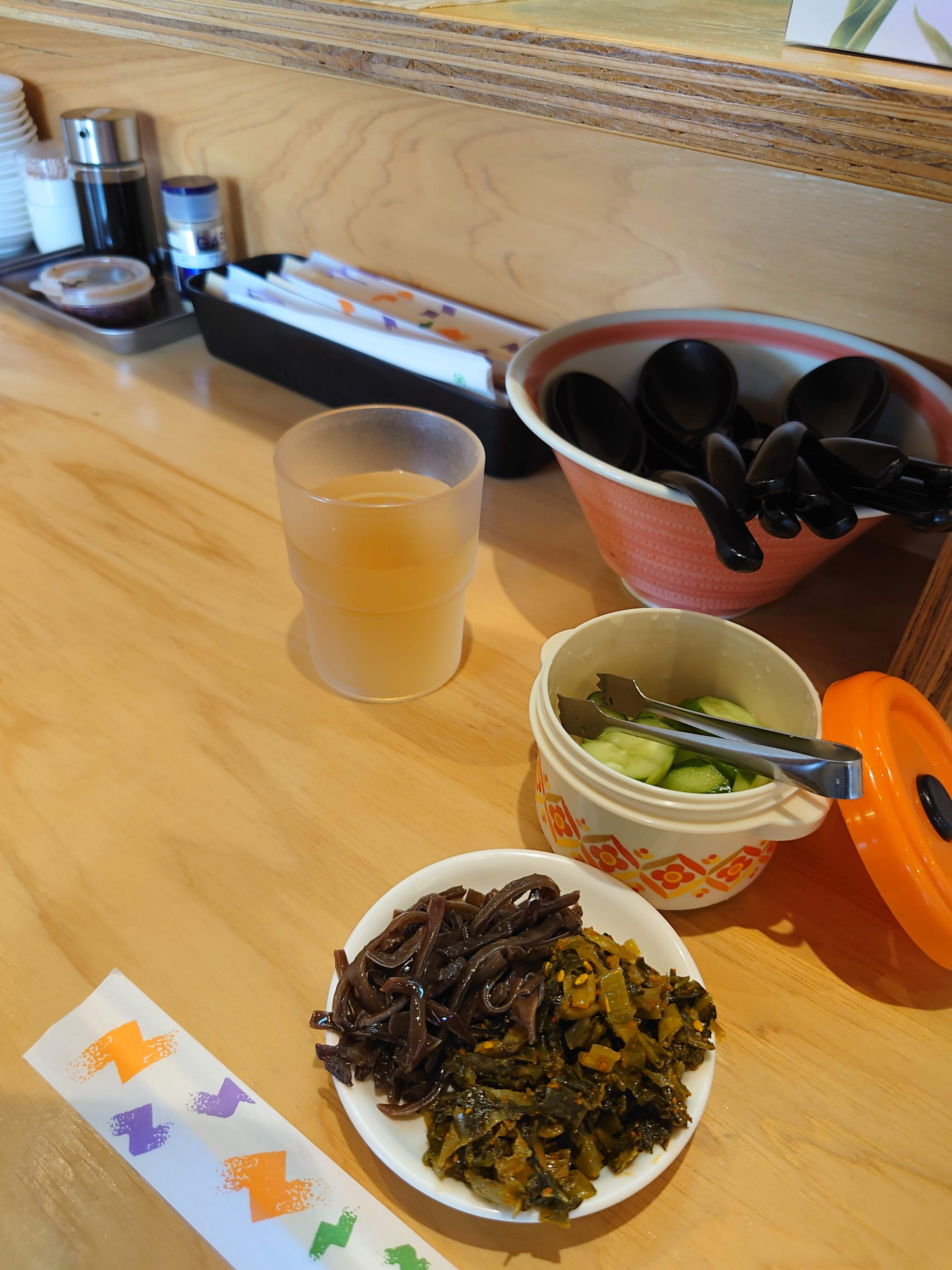 あー、個別にキュウリの漬物も提供されるので