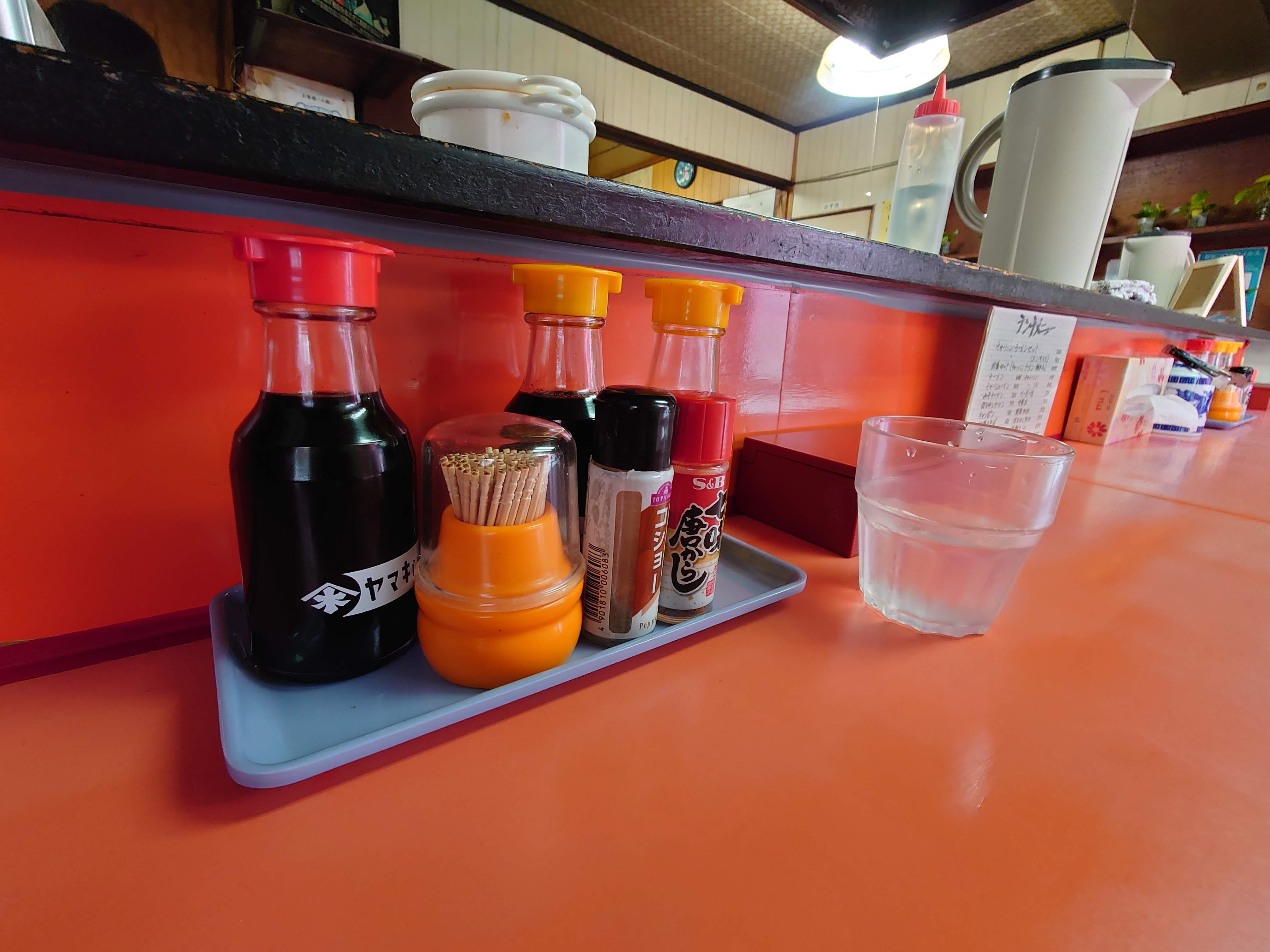 朱色のカウンターがなんとも言えず。