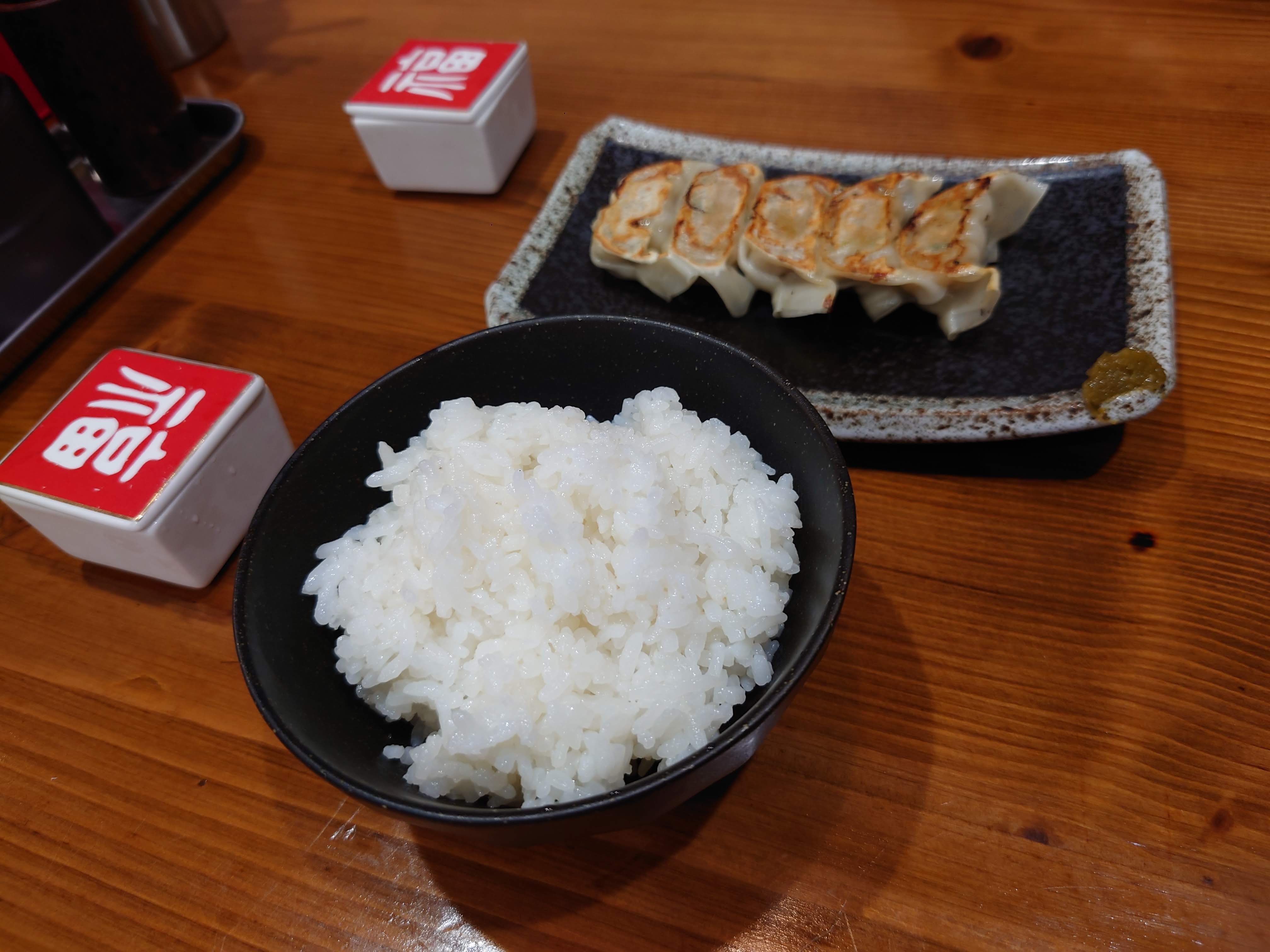 まずは餃子とごはんから。