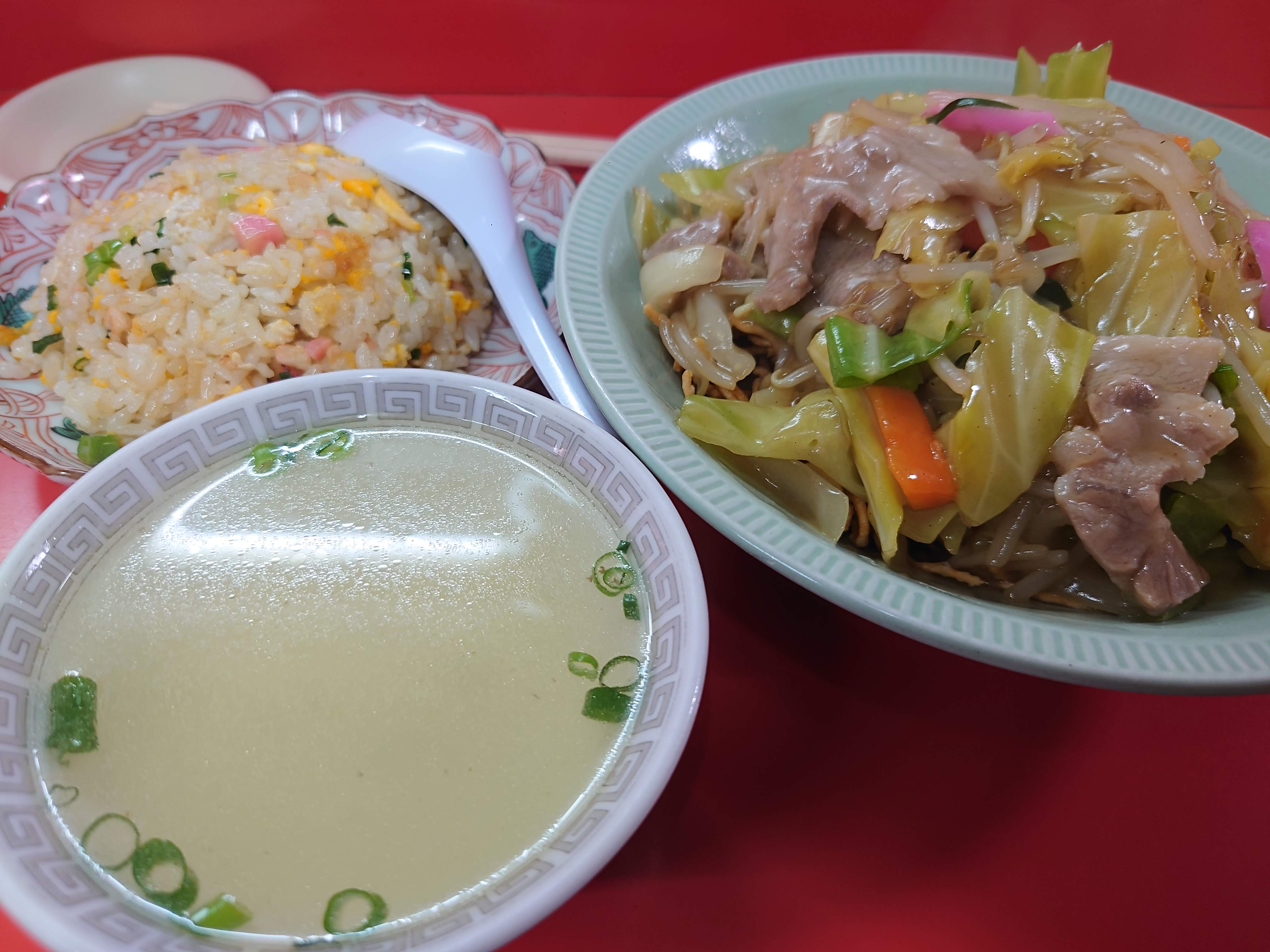 カタ焼きそばと半チャーハン