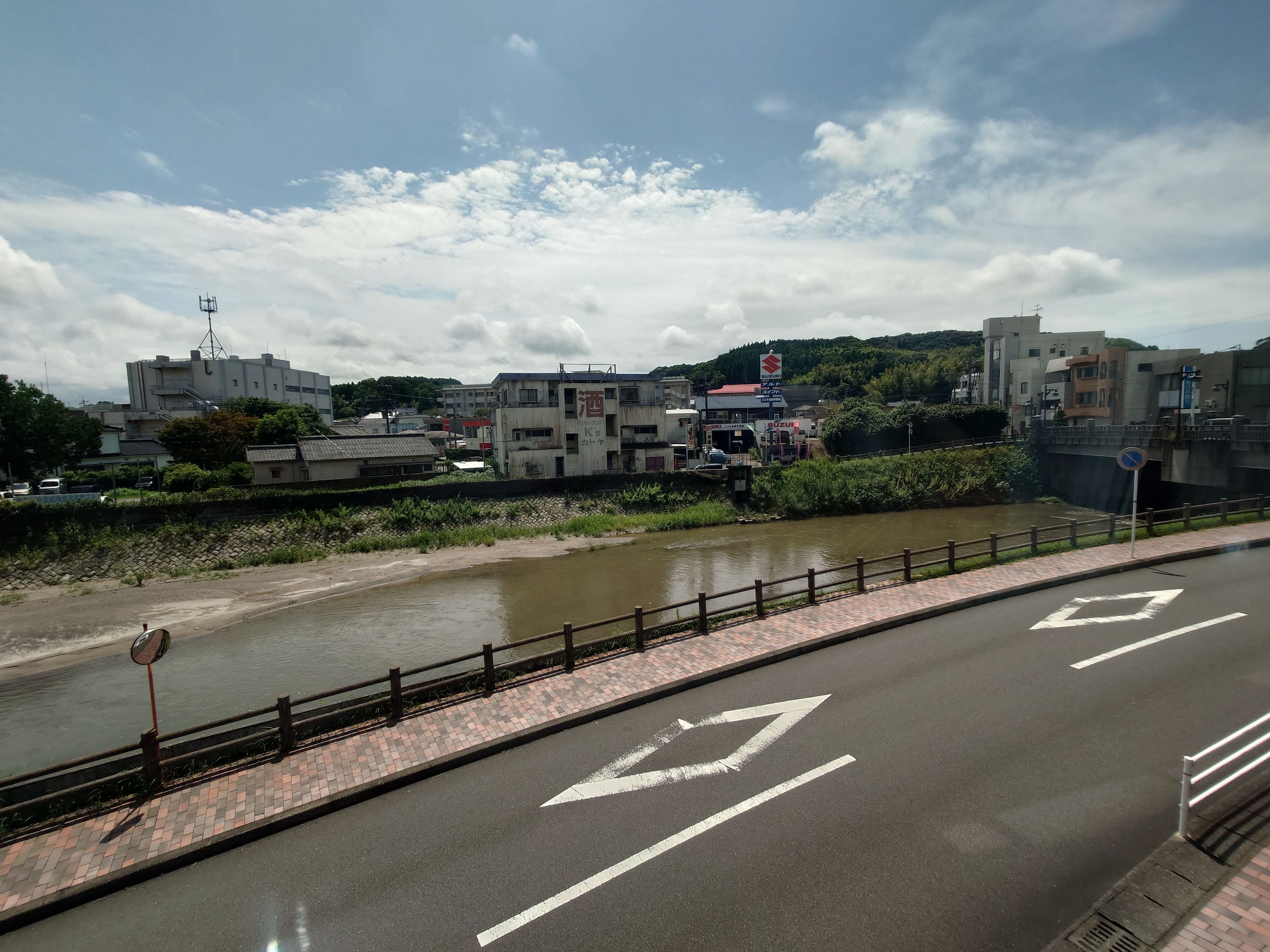 川が西側(左から右)へ流れていること。
