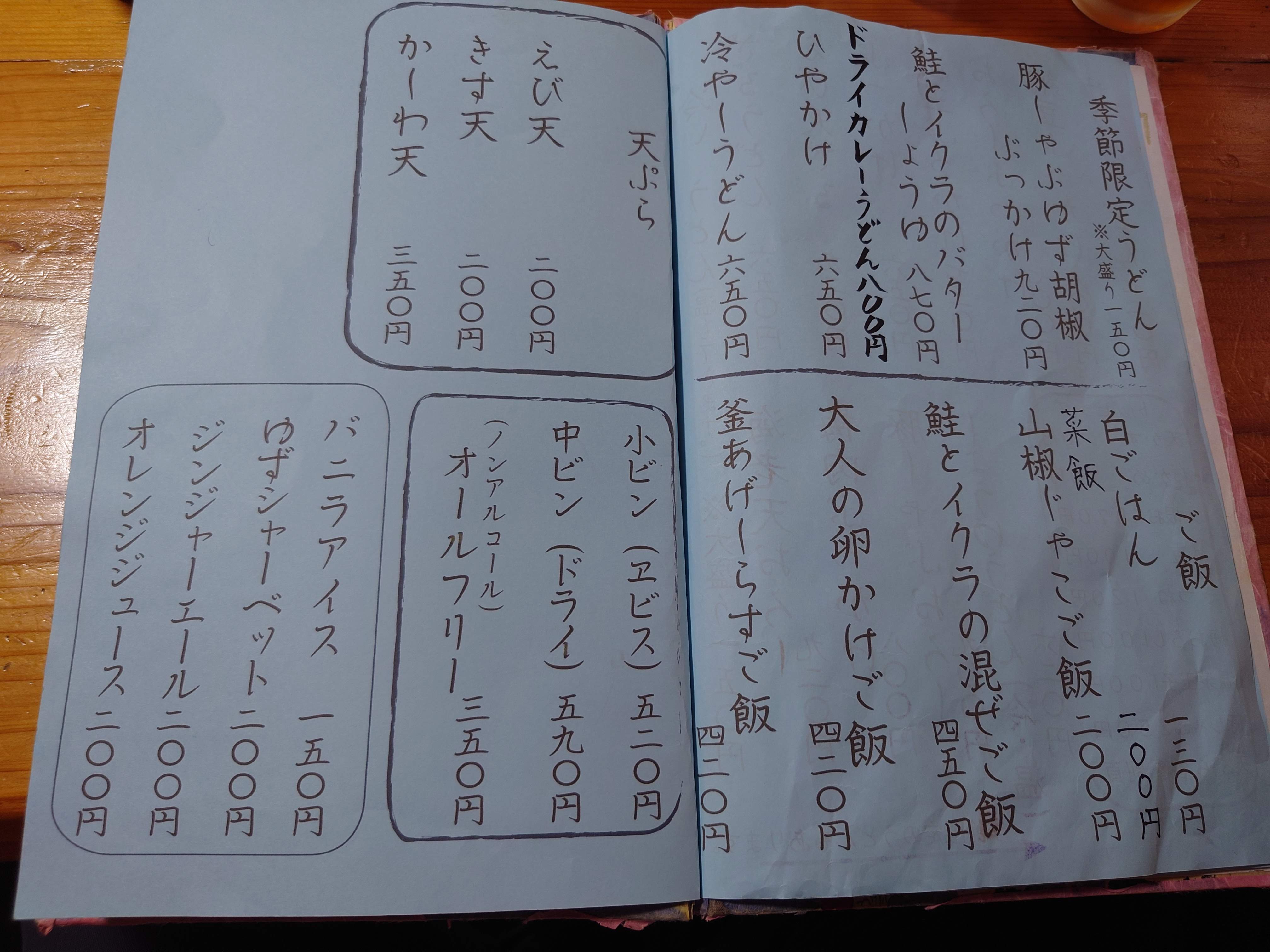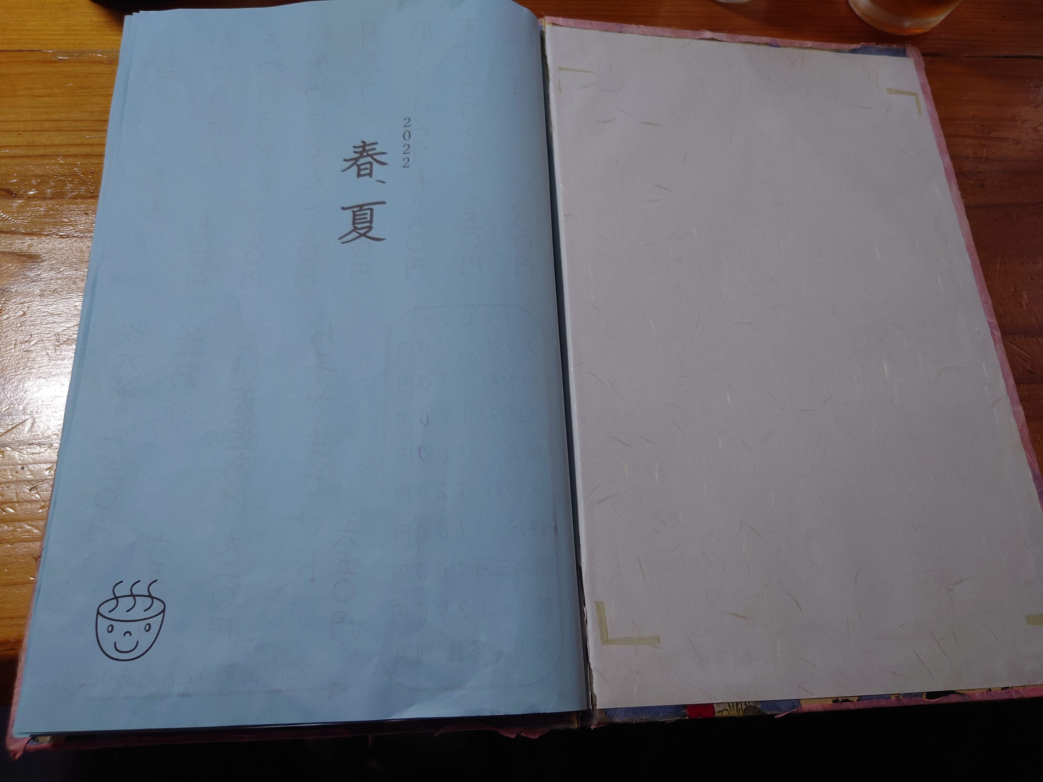 さてメニュー。