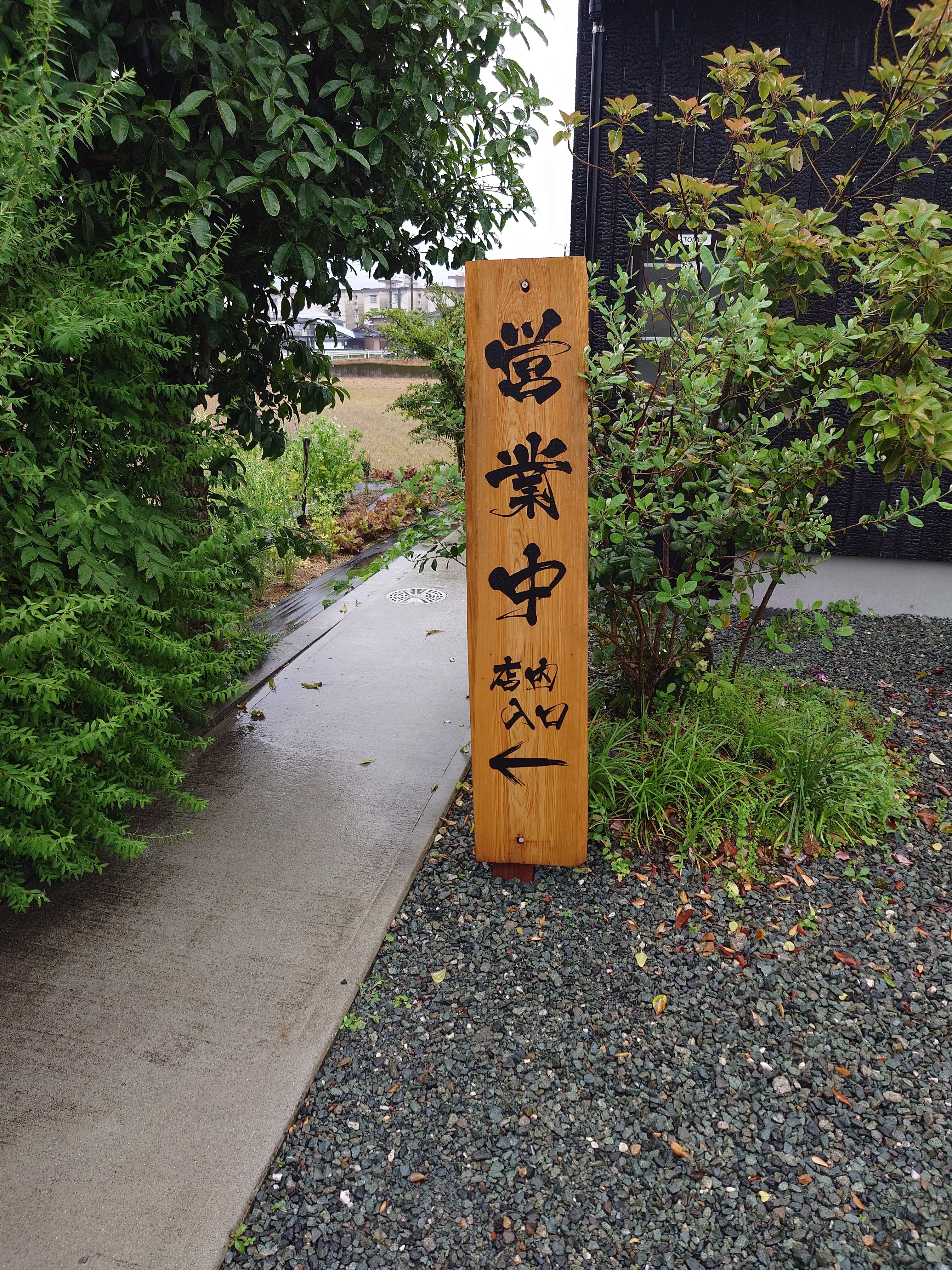 店の壁は焼き板の黒々としたところに