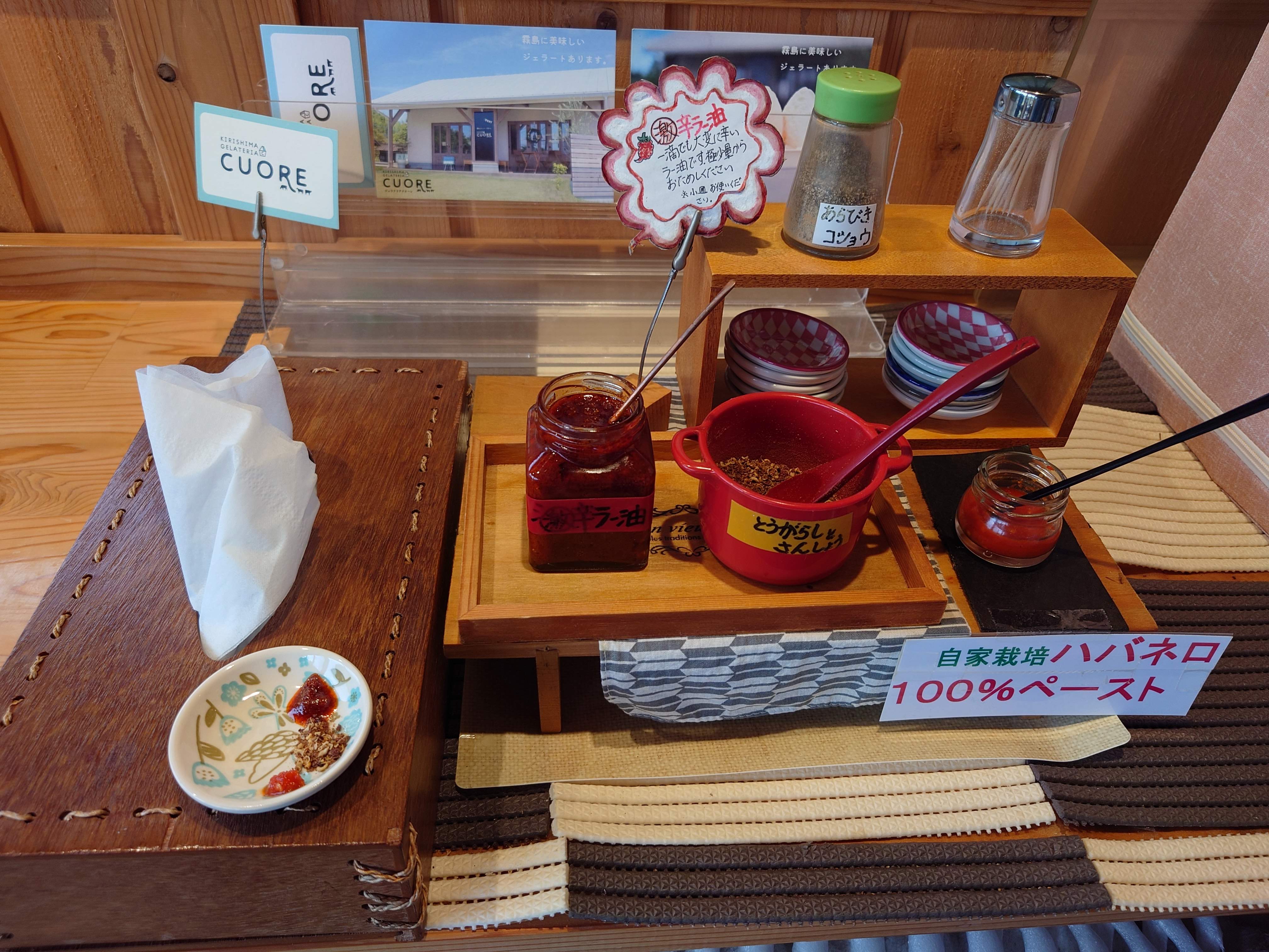 カウンター端の調味料台から