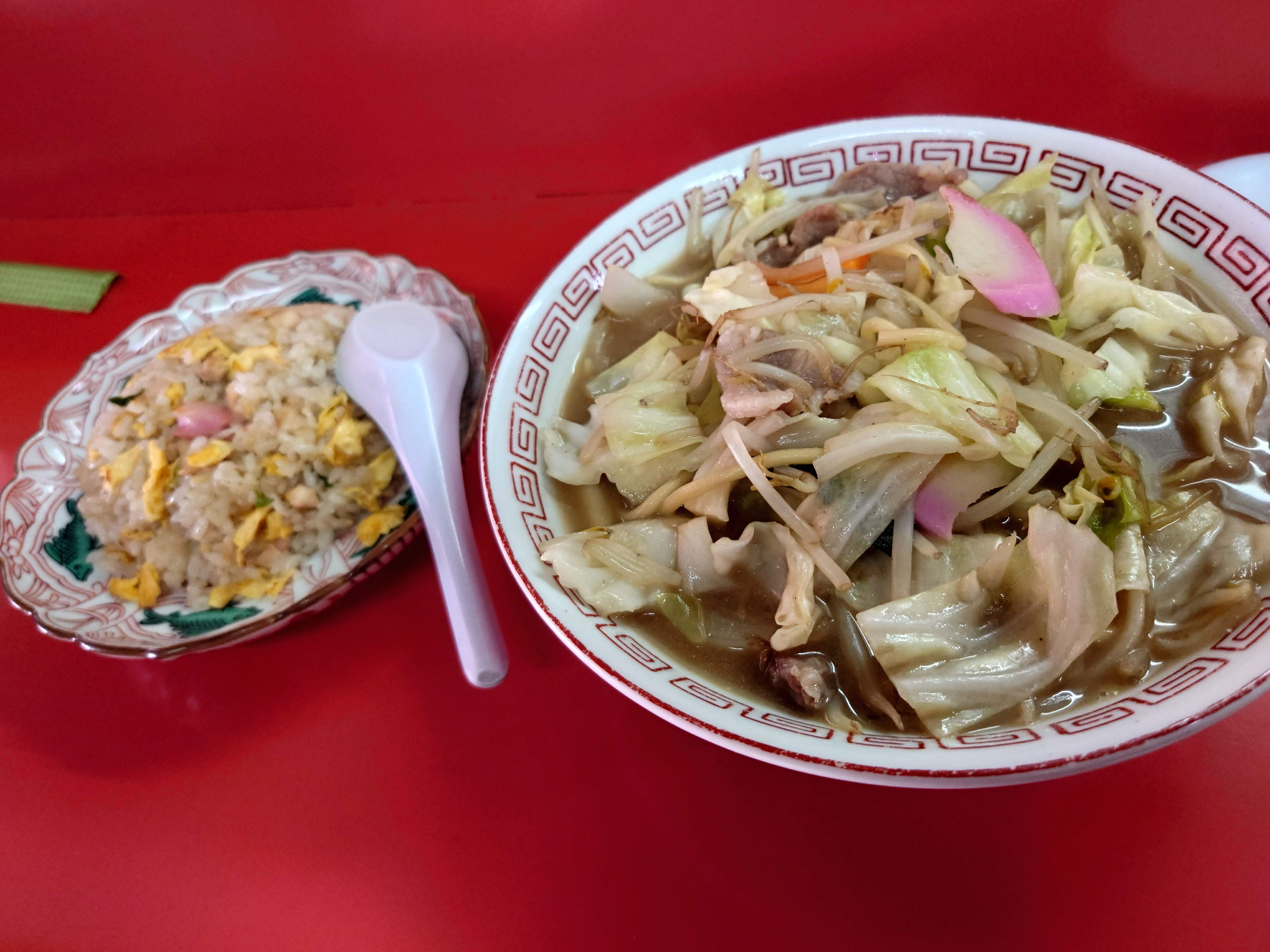 チャンポンと炒飯、たまらんですな!小生も野菜好きなもんで、野菜マシは当たり前田のクラッカーでござる!