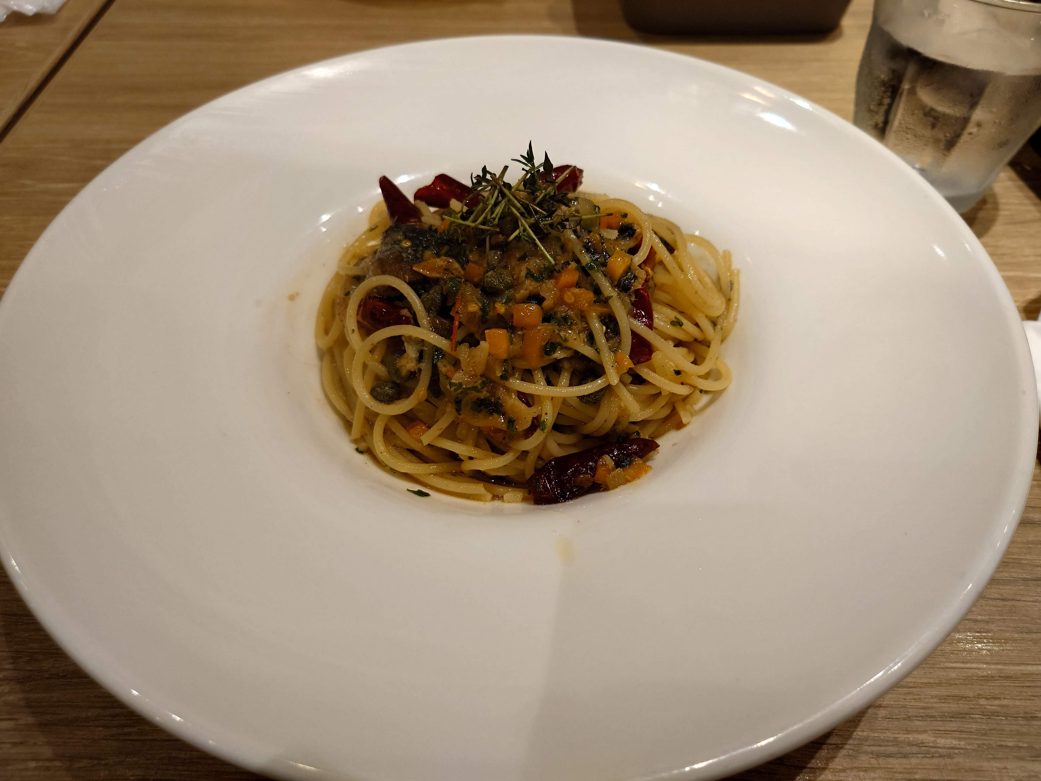 ちんまりと盛られたスパゲティ。
