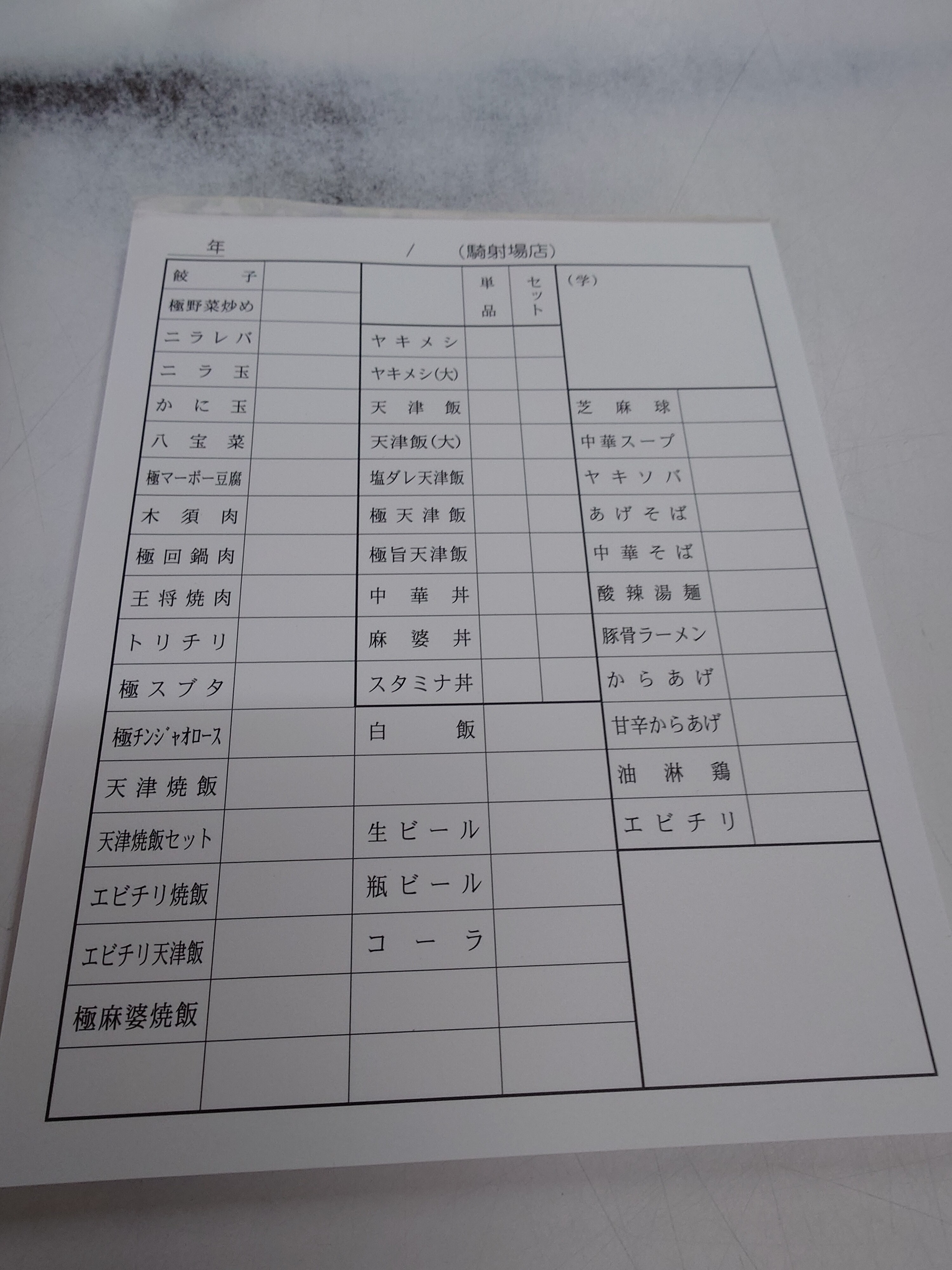 「天津飯の小はどこに書くんですか?」