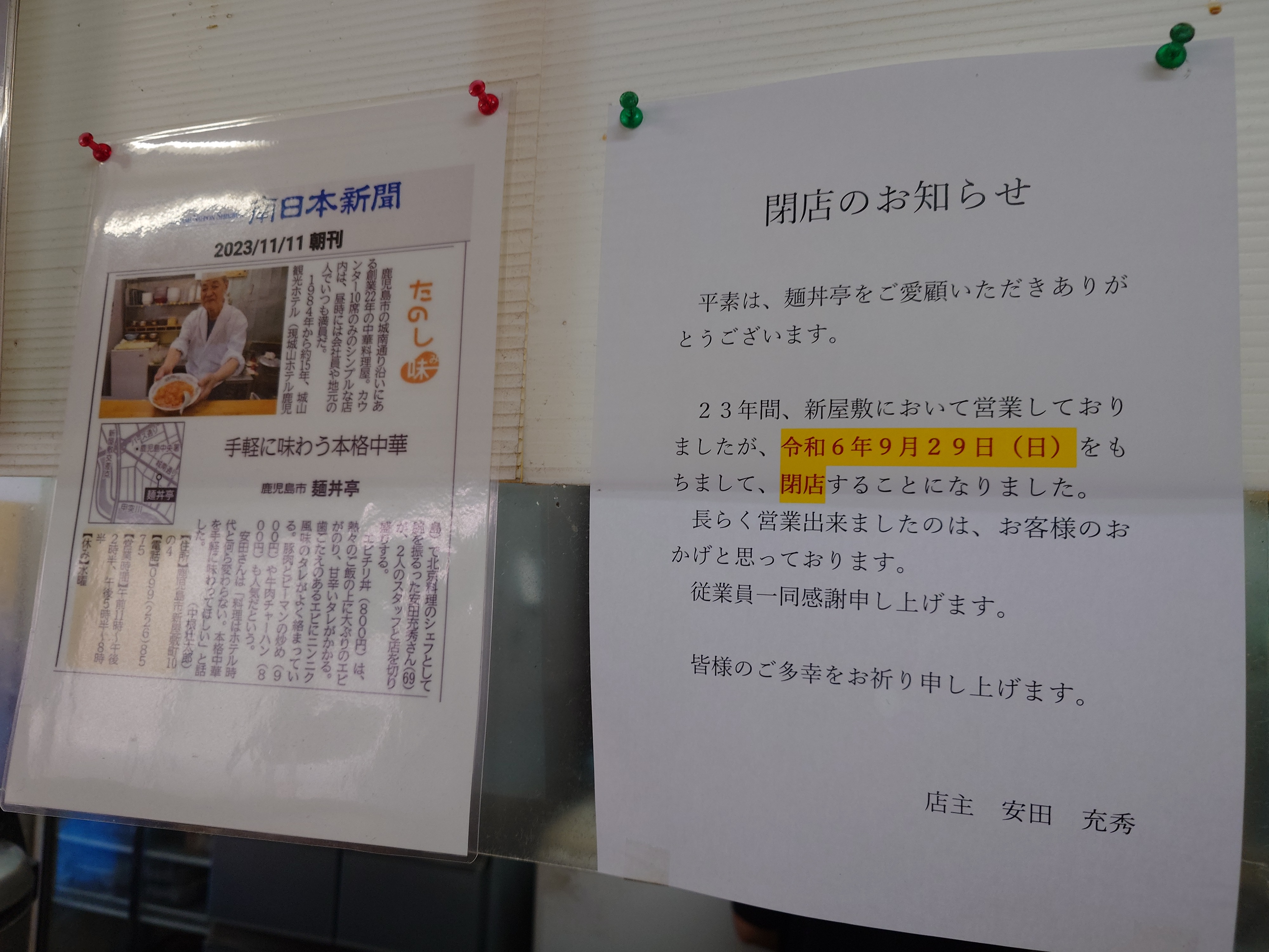 閉店を告知する貼り紙。