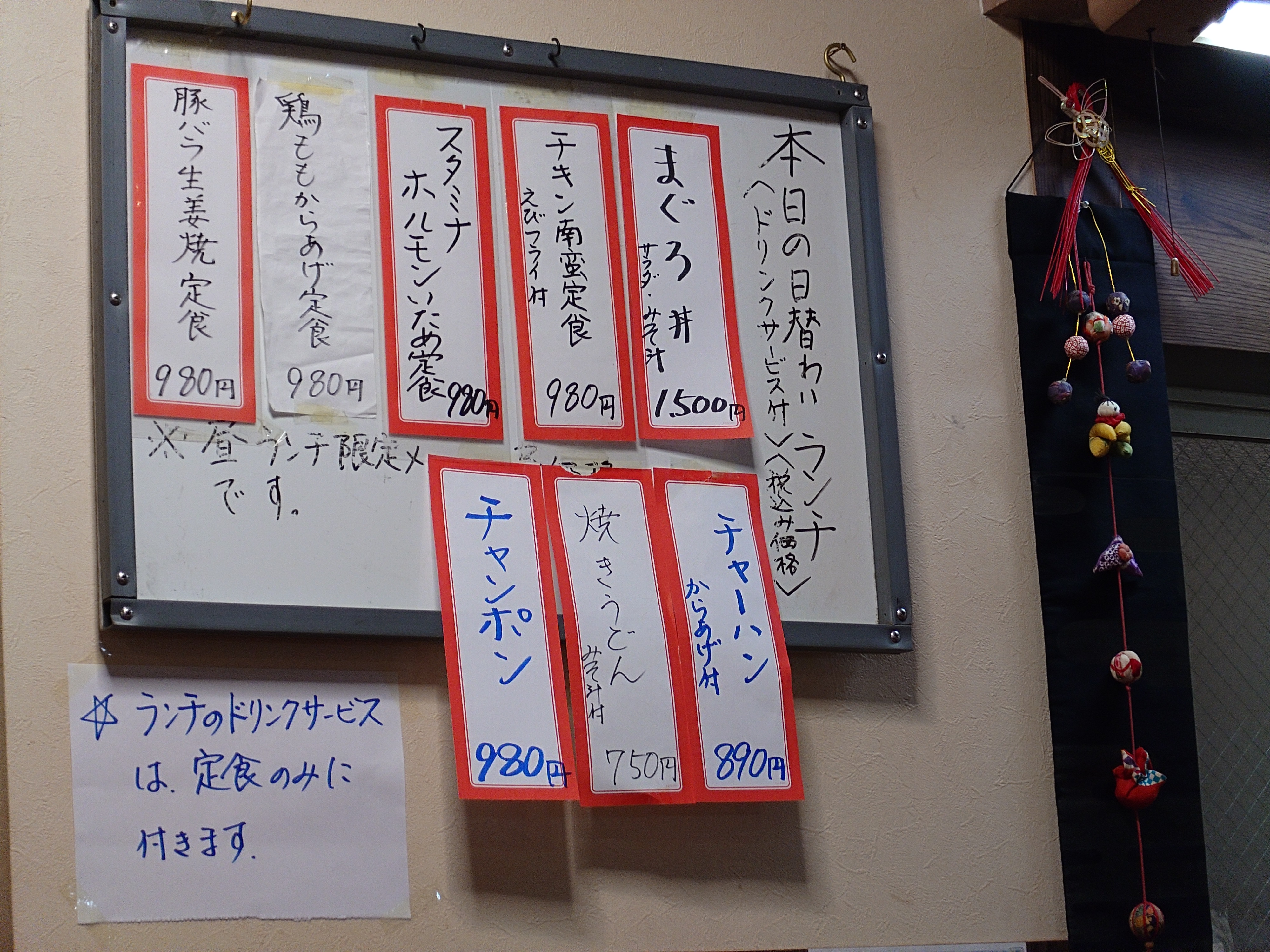 店内のメニューは