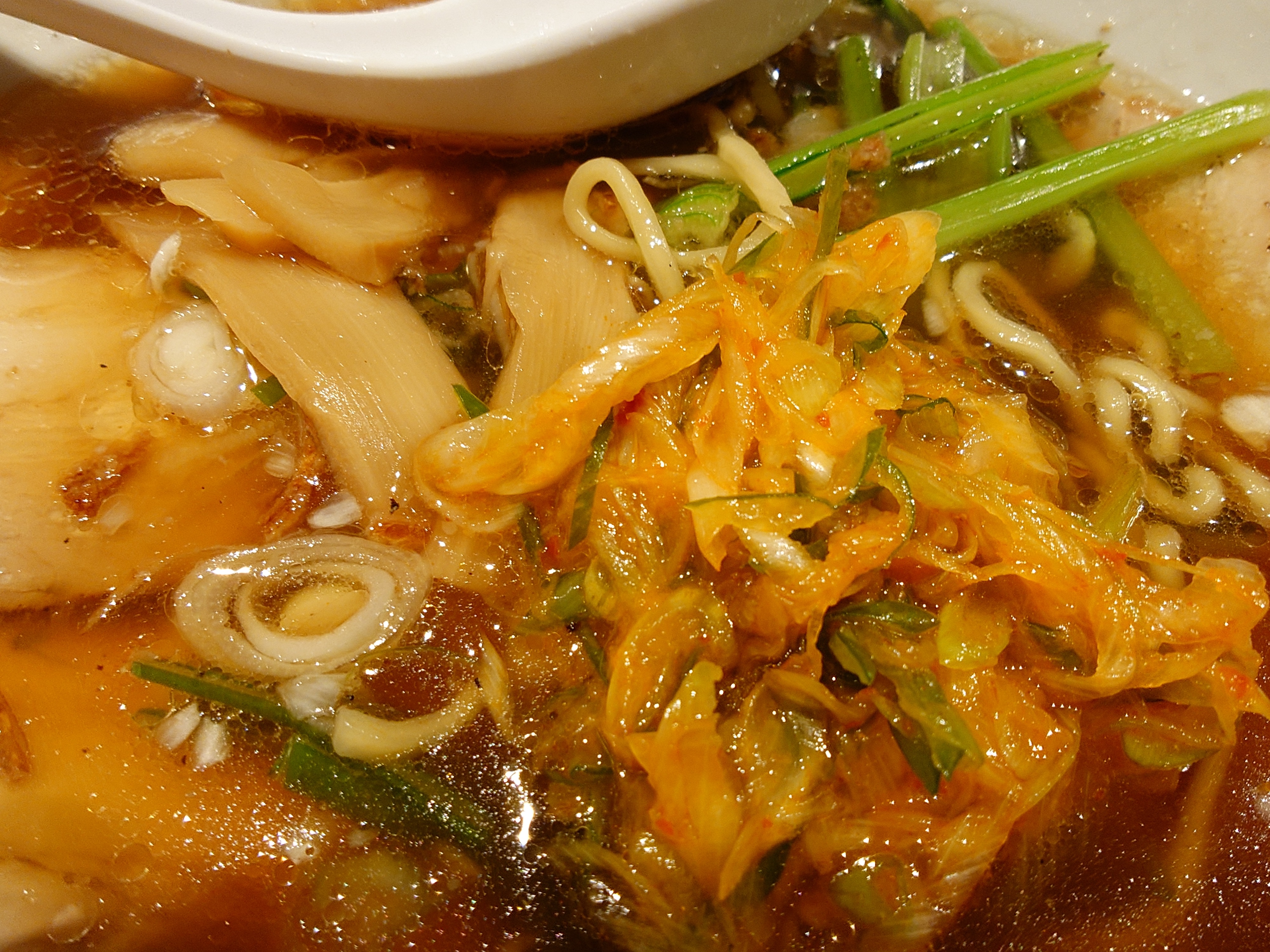 透き通った醤油カラーの強いスープ。