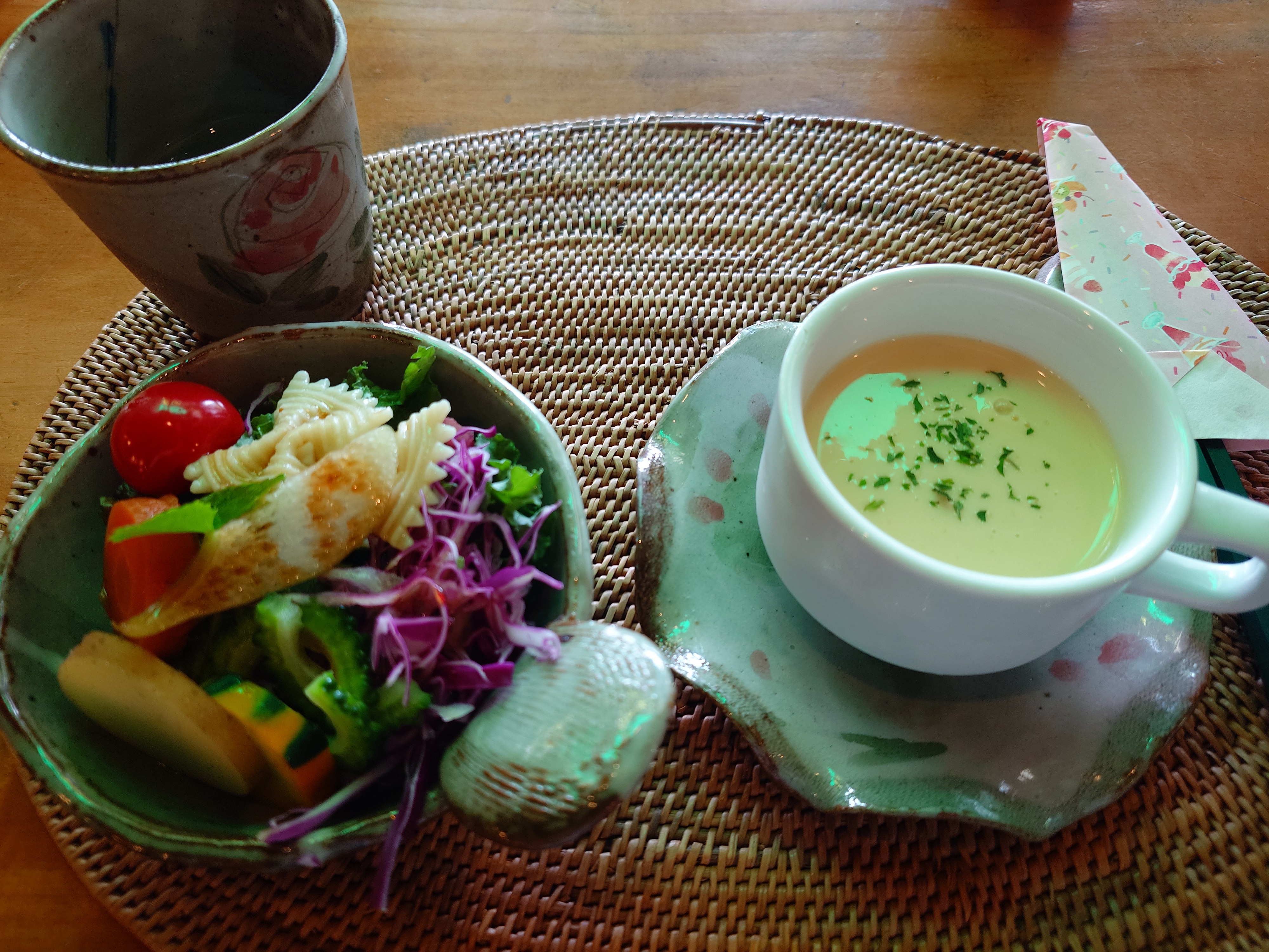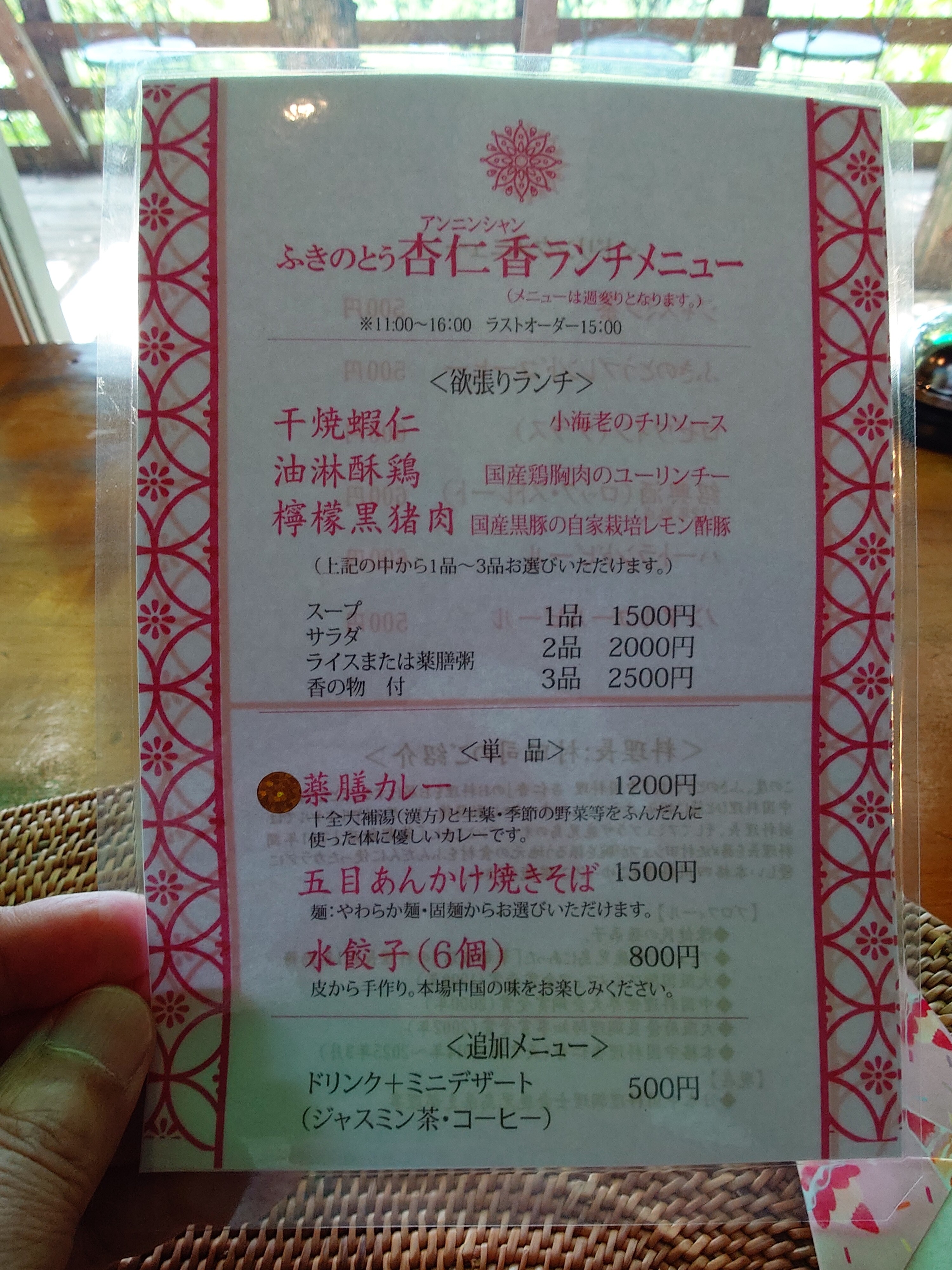 んじゃ、これにサラダと薬膳粥のセットで。