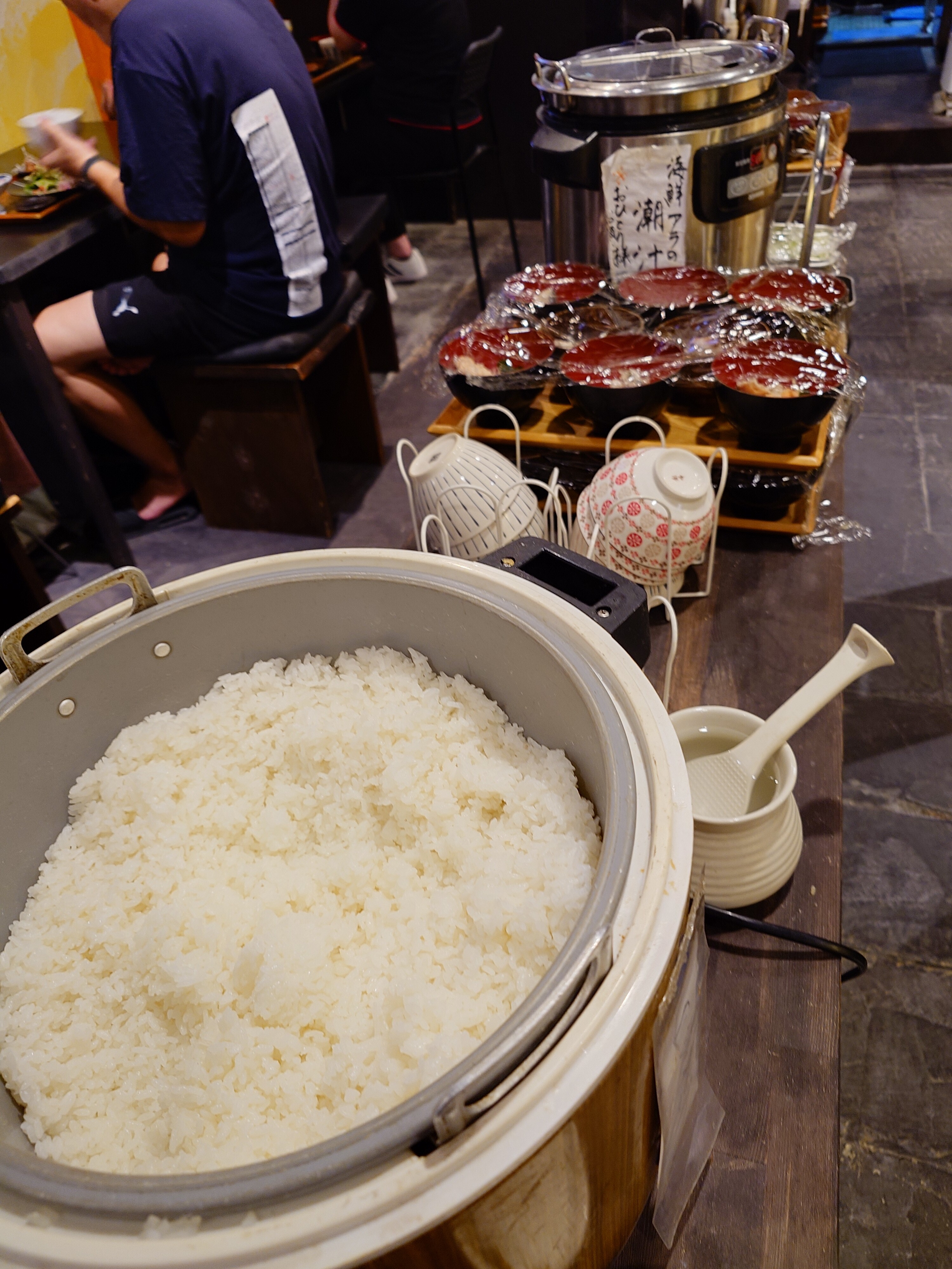 ごはんと汁物をセルフで注ぎに。