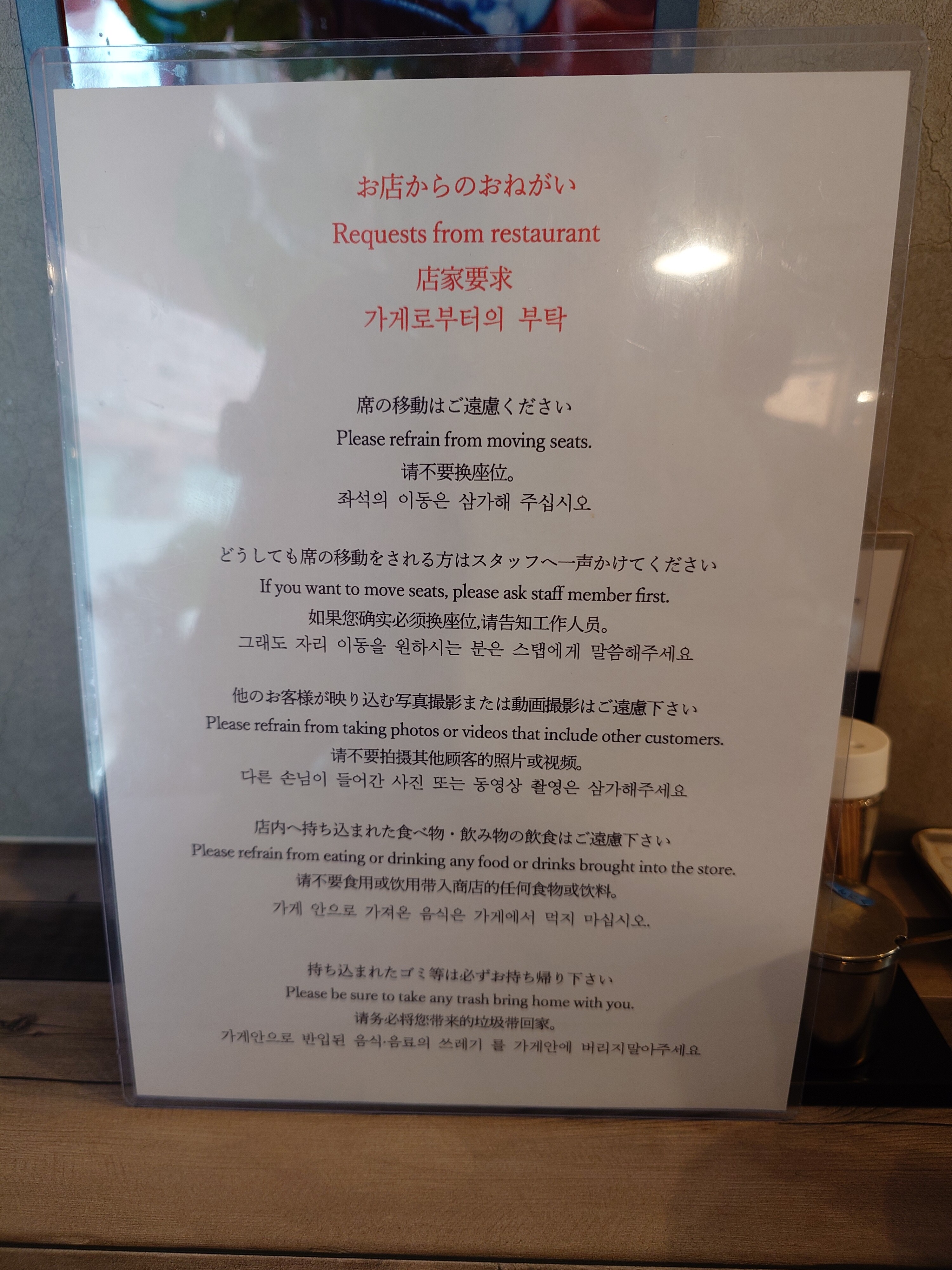 入口方面の壁に向かったカウンター席へ。
