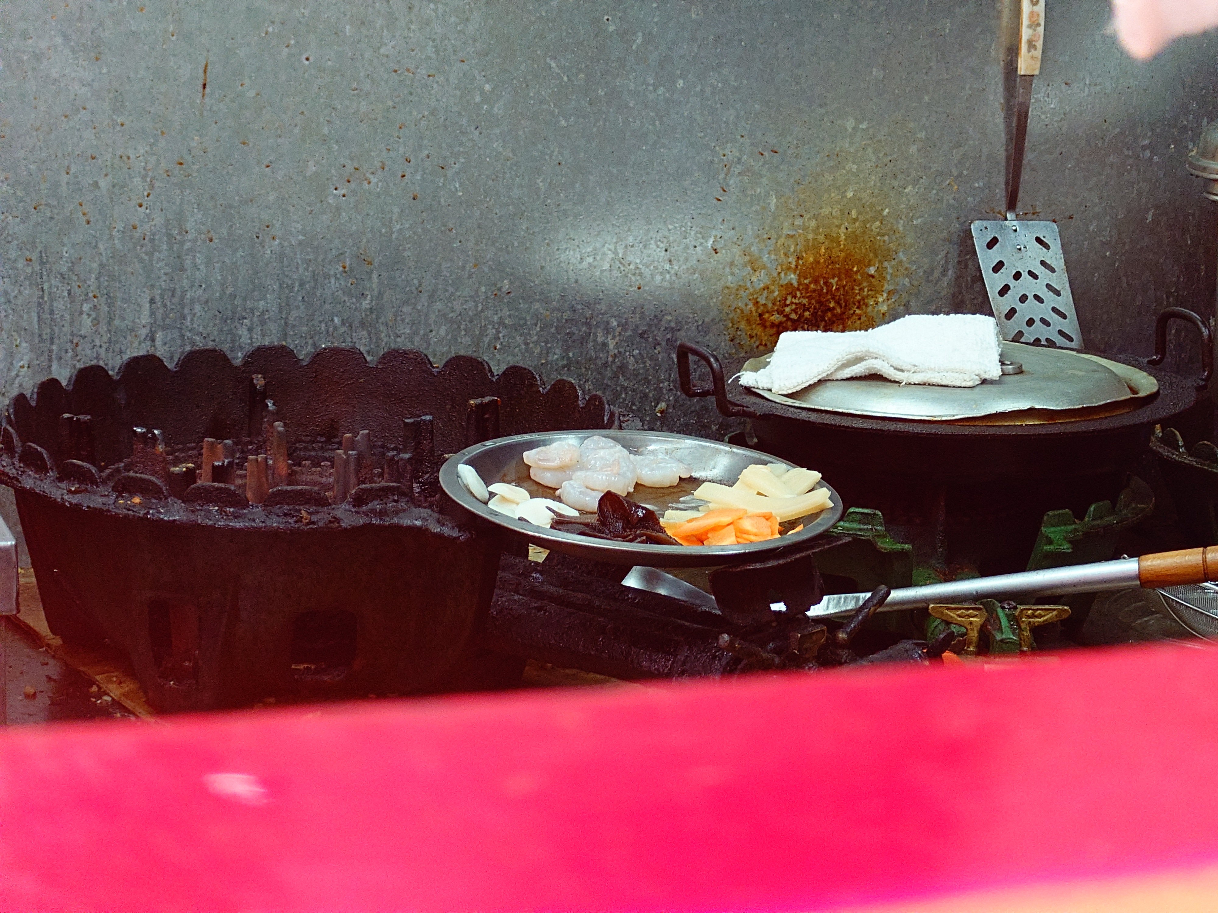 手前では具材を皿に揃える
