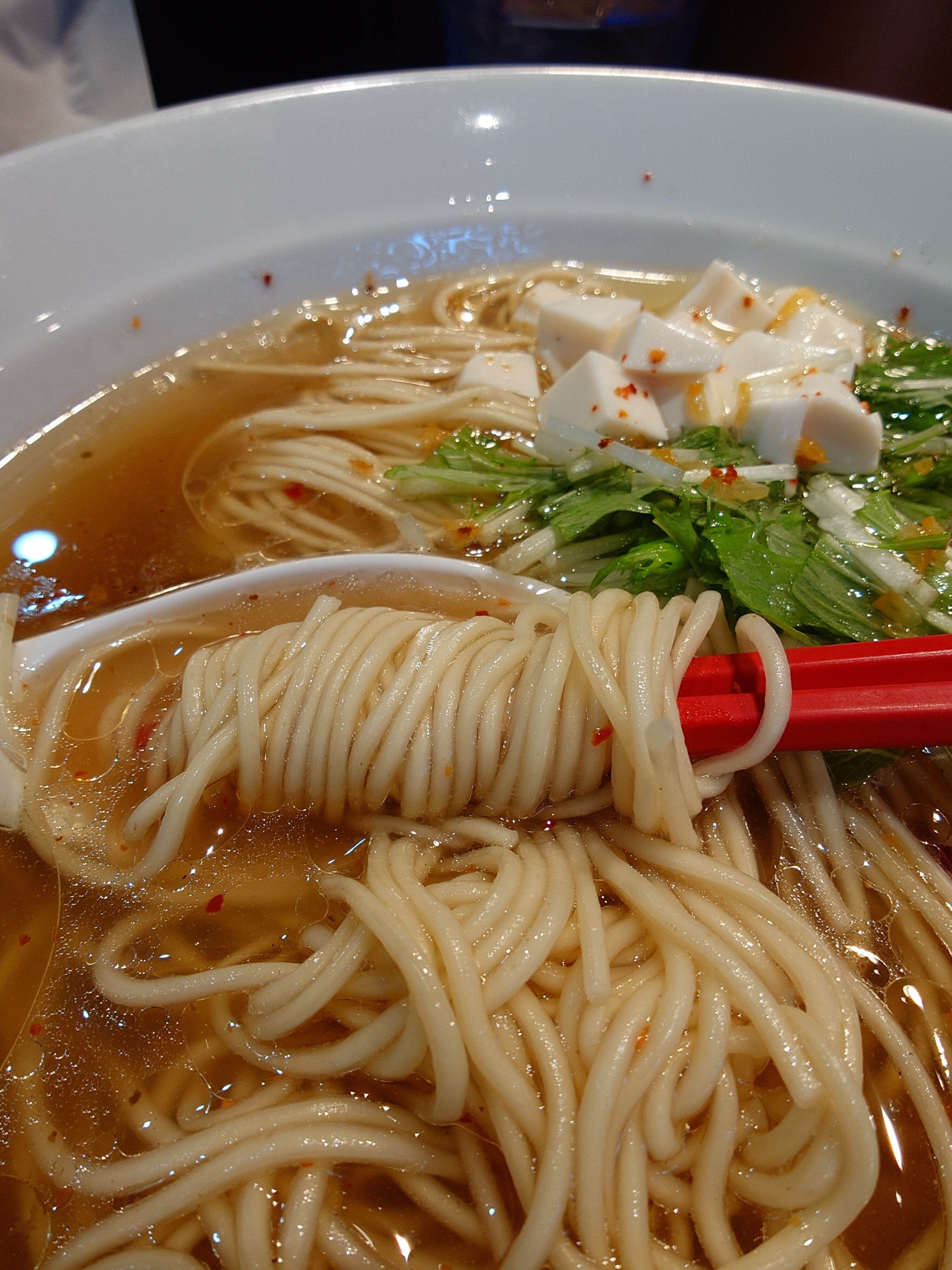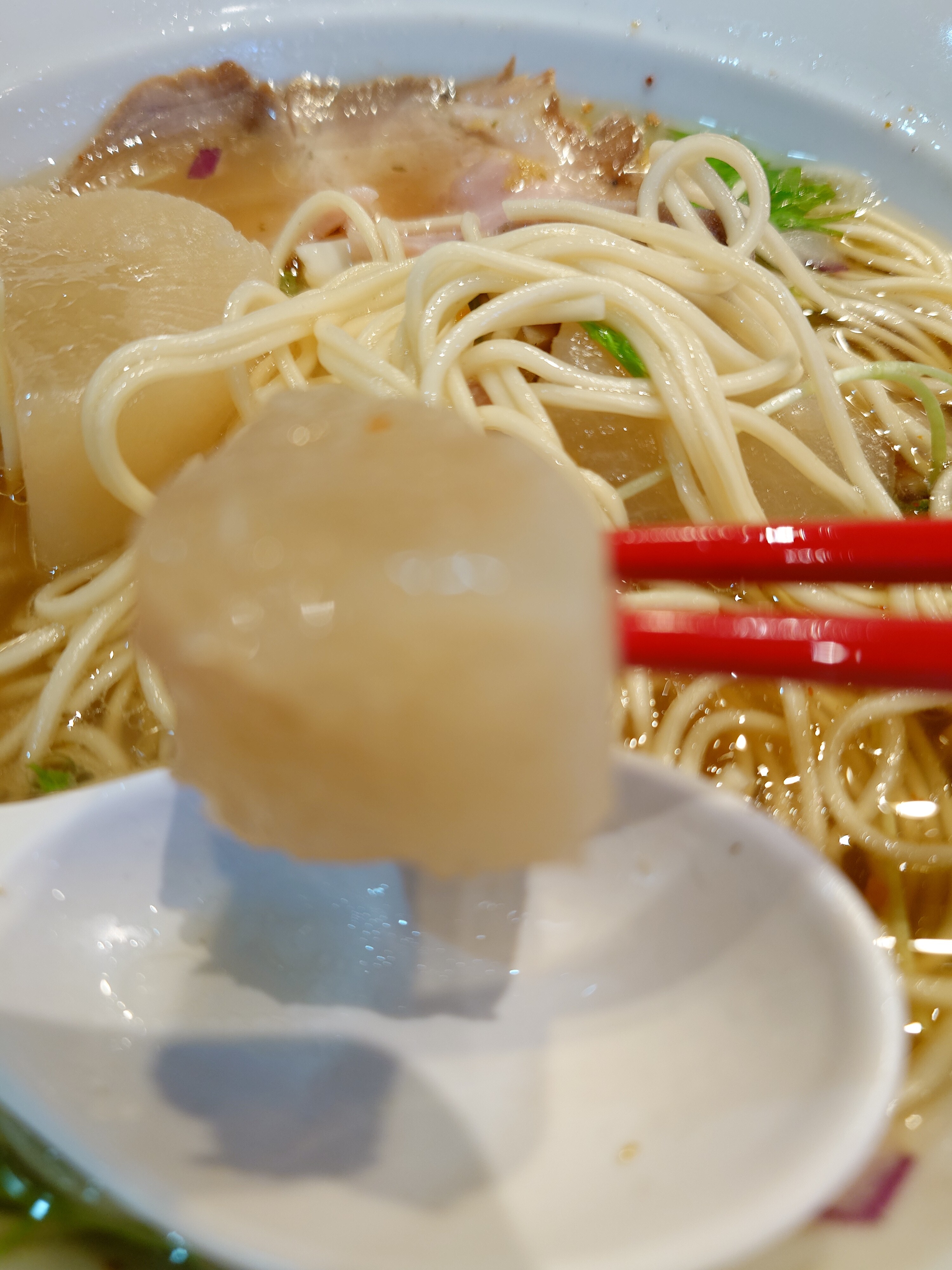 白く細い麺がたゆたう。