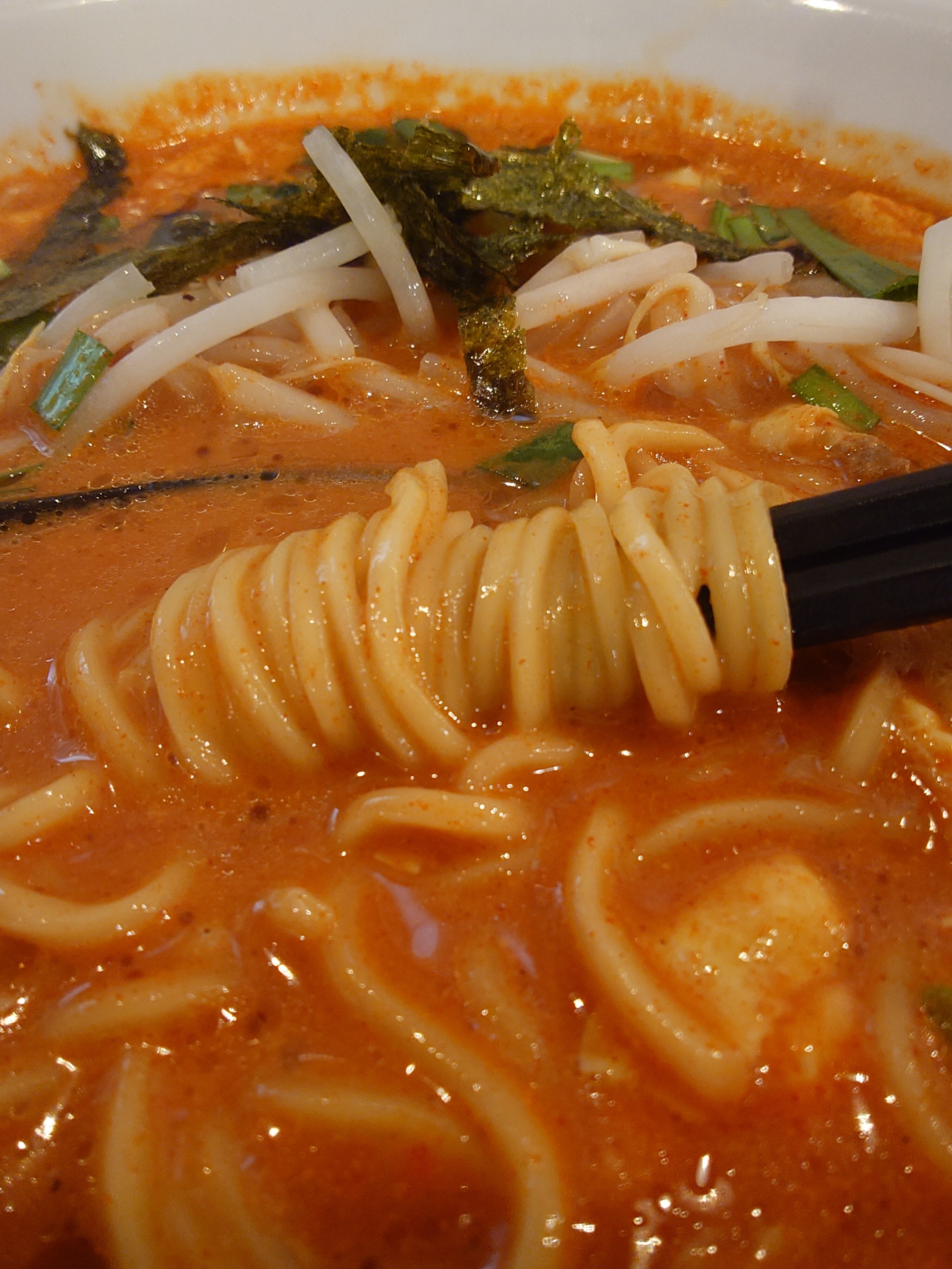 いつもの辛麺のカラーよりも