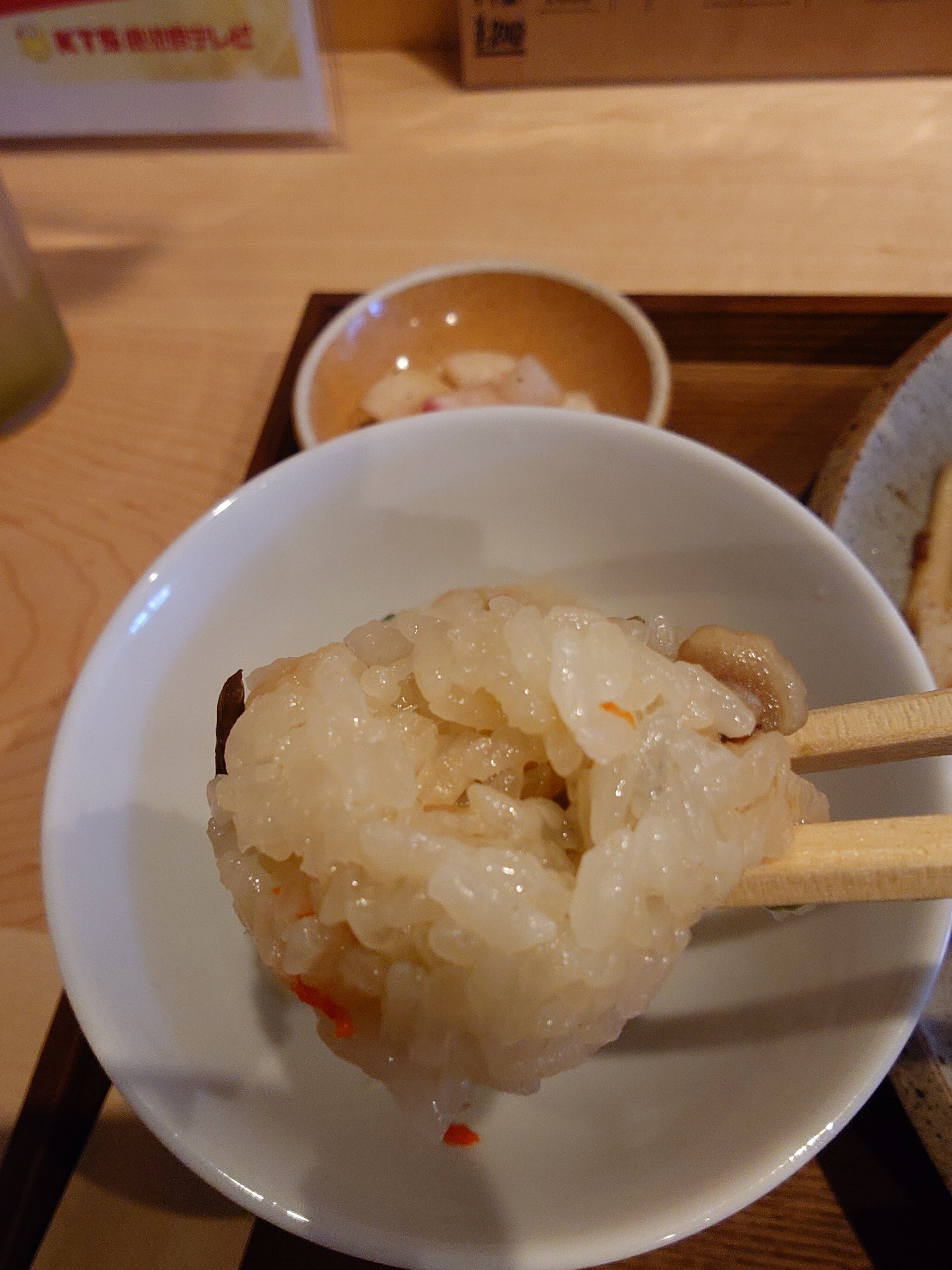 「あ。山菜おこわと。」