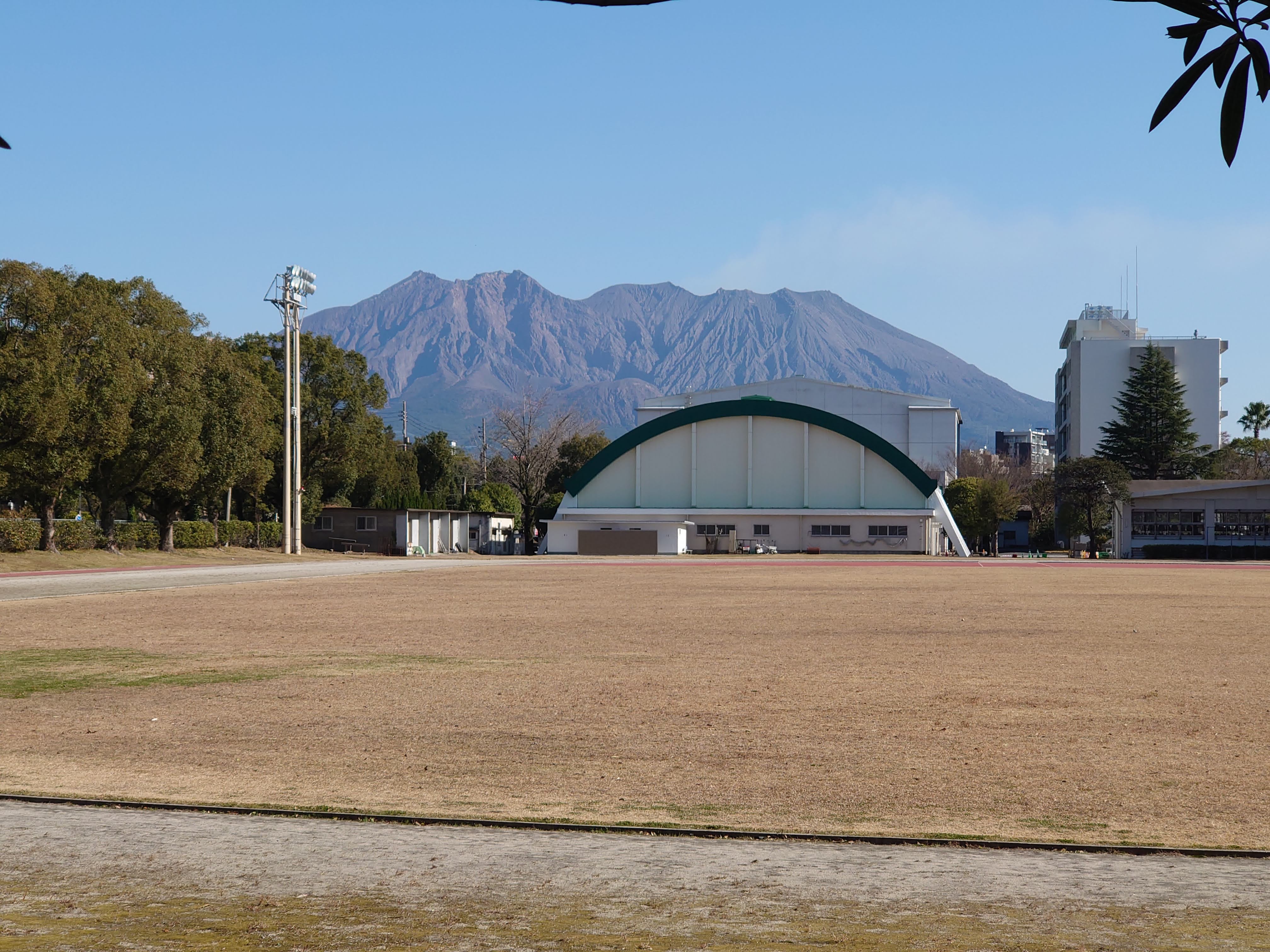 鹿大教育学部の運動場が。