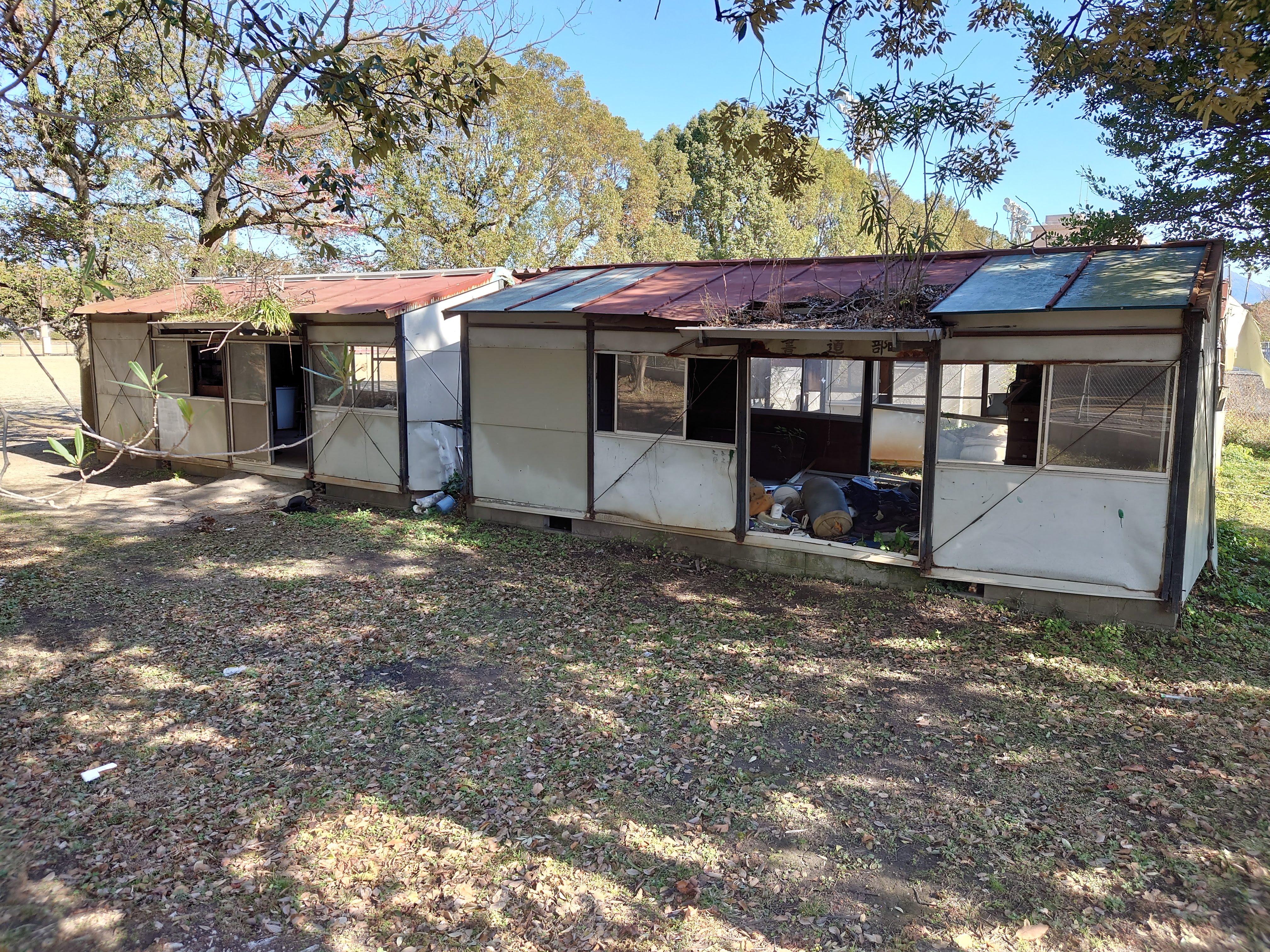 その隣にはプレハブの廃墟のような部室が。